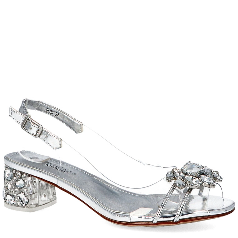 Sandały silikonowe, niski słupek - SCAVIOLA G-25 - SREBRNE