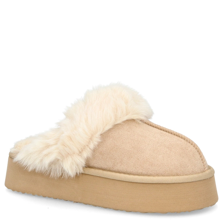 Modne kapcie z futerkiem - FILIPPO DK6679/24 BEŻOWE