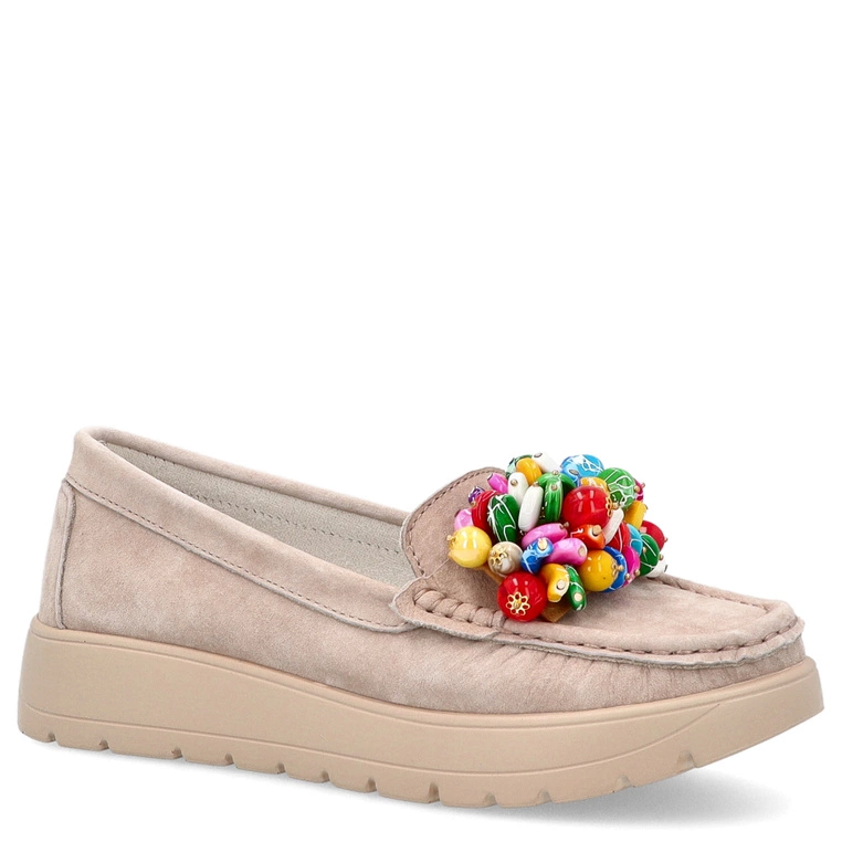 Skórzane mokasyny damskie - FILIPPO FILIPPO DP4128/24 BEŻOWY