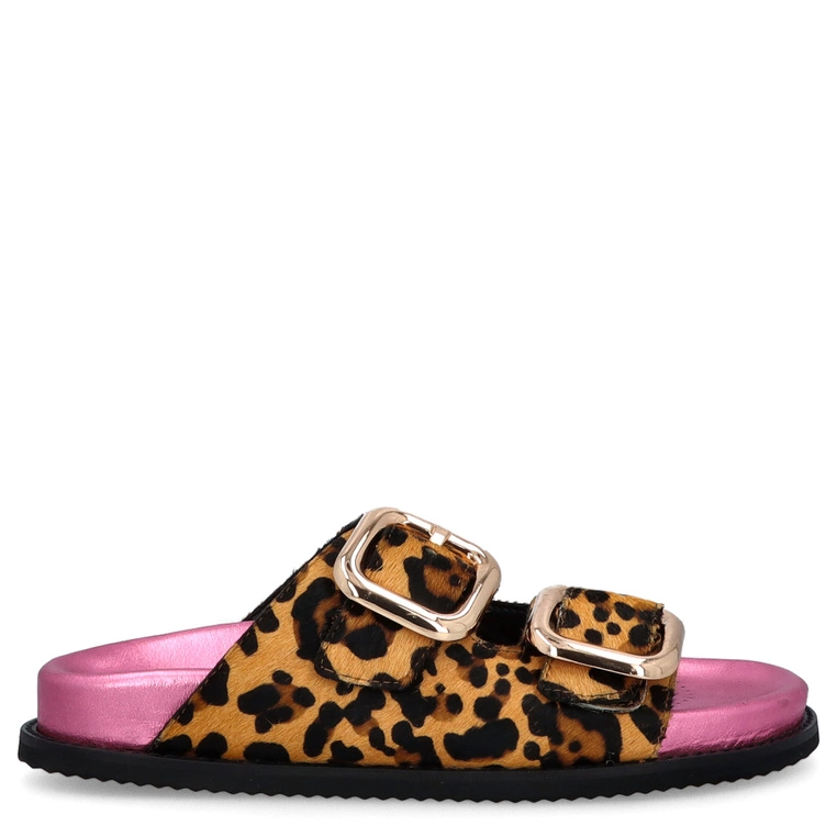 Skórzane klapki damskie - GIOSEPPO 75453 PANTERKA