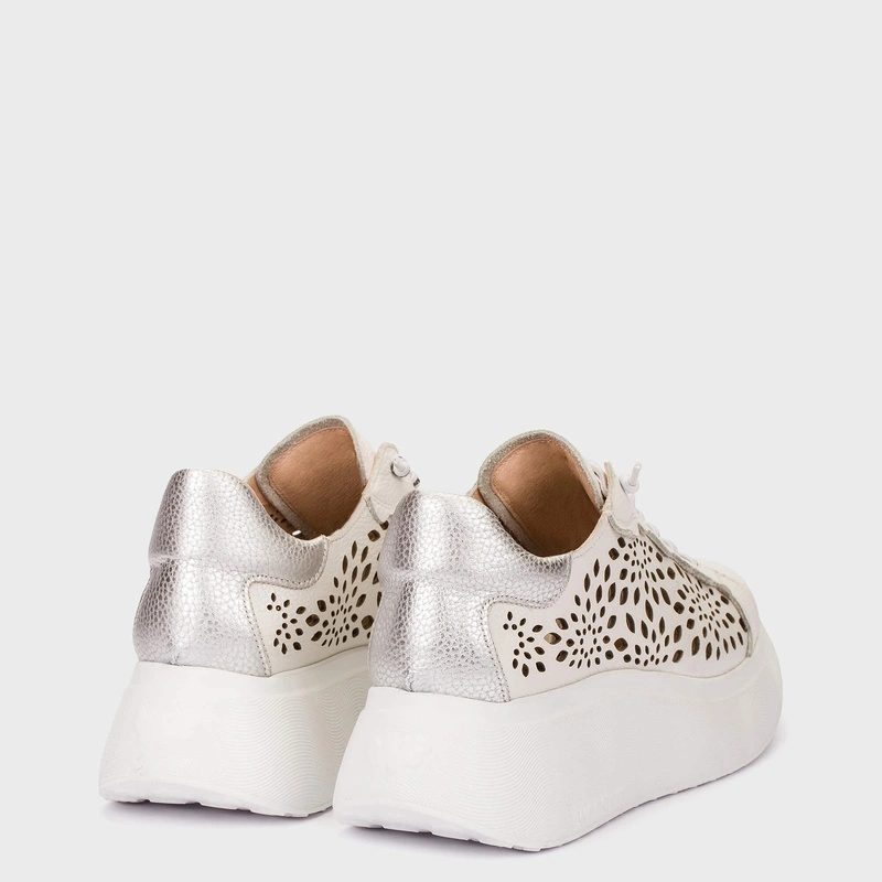 Ażurowe sneakersy damskie Wonders A-3641 w białym kolorze to idealna propozycja na cieplejsze dni dla kobiet, które szukają połączenia wygody i nowoczesnego stylu. Lekka konstrukcja oraz perforowana struktura zapewniają stopom komfort i przewiewność, a minimalistyczny design sprawia, że model doskonale wpisuje się w codzienne, miejskie stylizacje.