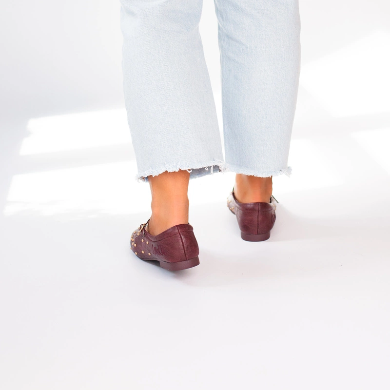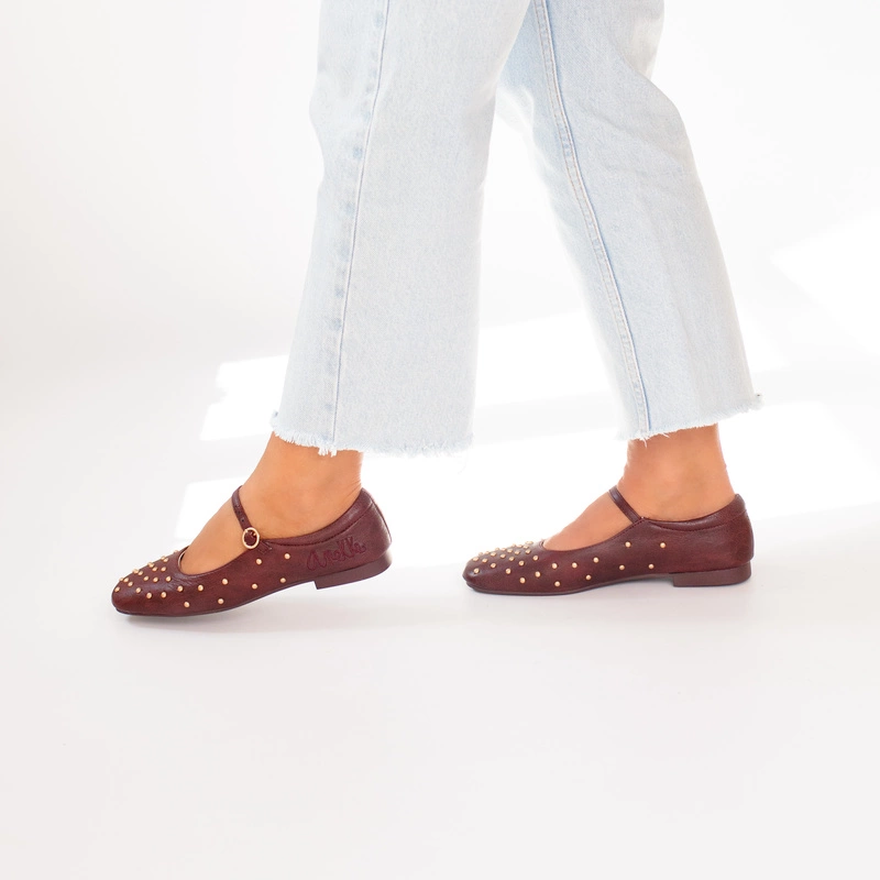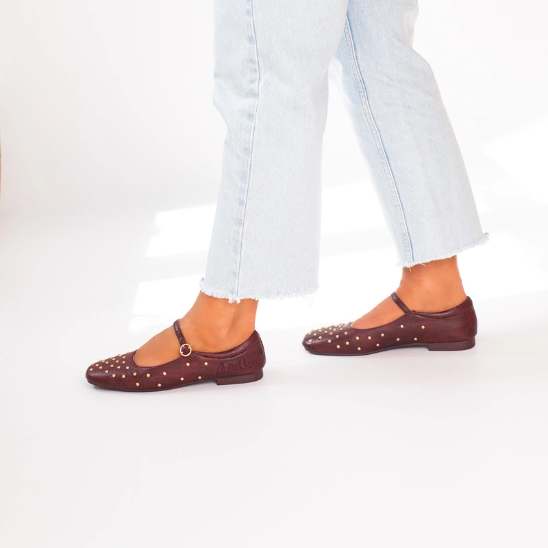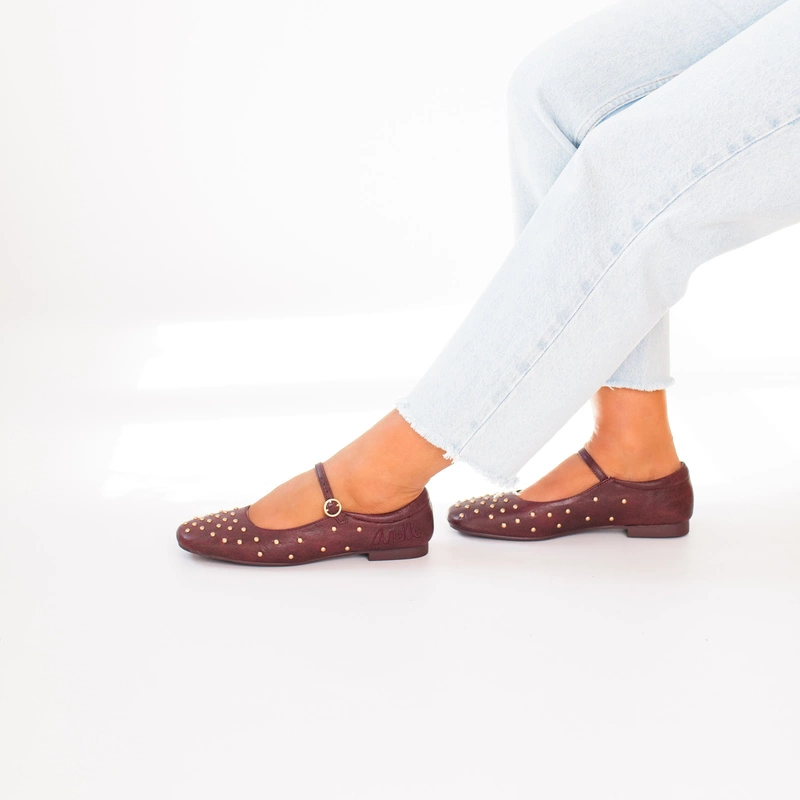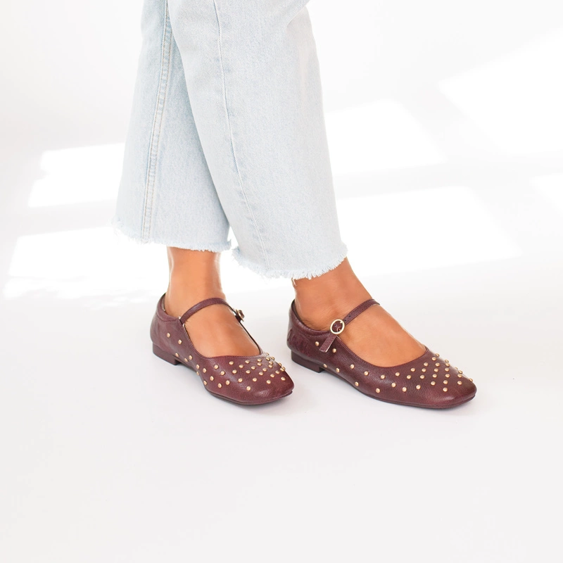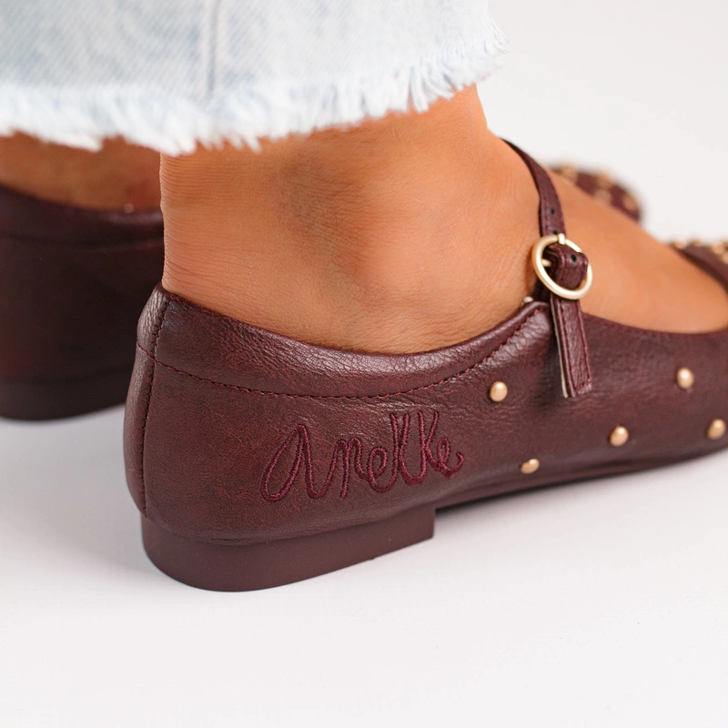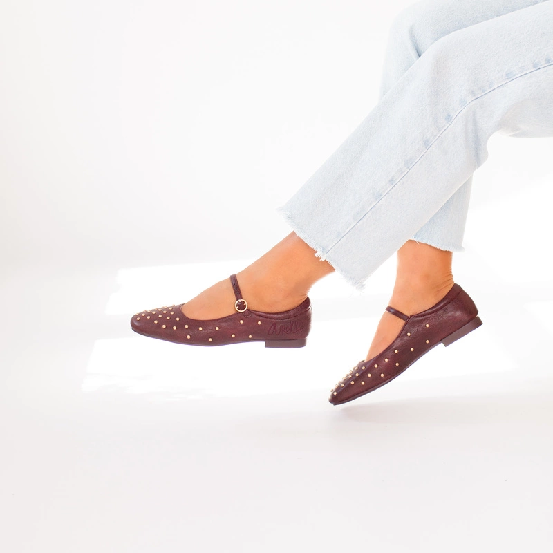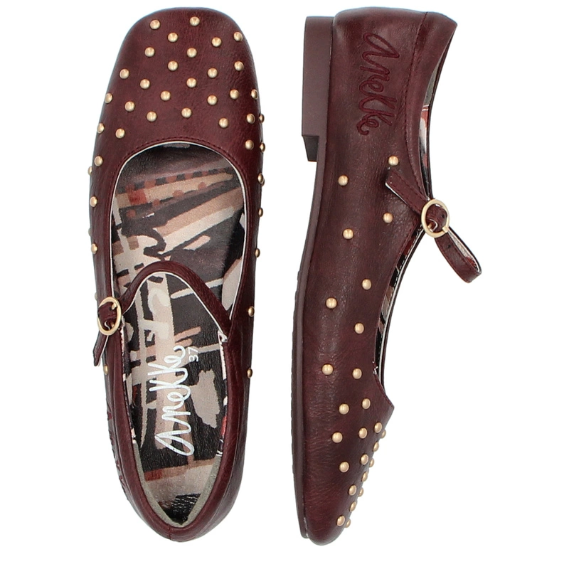 Baleriny z zapięciem Anekke Mademoiselle – bordowa elegancja ze skóry naturalnej