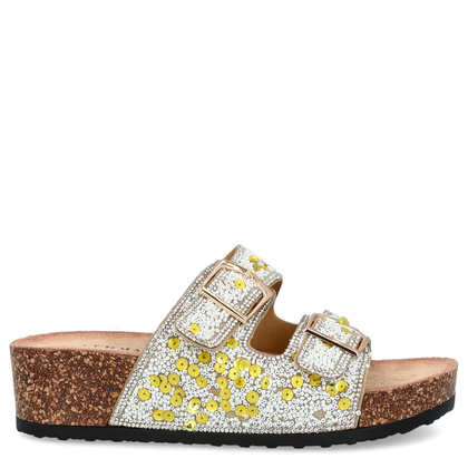 Dodaj odrobinę luksusu do swojej garderoby dzięki błyszczącym klapkom na platformie Scaviola L-44. To wyjątkowe obuwie, które łączy elegancję z wygodą, doskonale sprawdzając się na letnie dni i wieczorne wyjścia. Klapki wyróżniają się złotymi zdobieniami, które przyciągają wzrok i dodają stylizacji ekskluzywnego charakteru.
