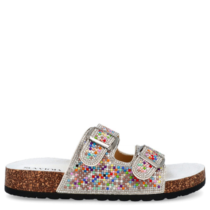 Klapki SCAVIOLA L-54 to doskonały wybór zarówno na wakacyjny spacer, jak i spotkanie z przyjaciółmi. Ich ponadczasowy, biały kolor z połyskującymi zdobieniami sprawia, że wyróżniają się na tle klasycznych modeli, dodając każdej stylizacji unikalnego uroku.