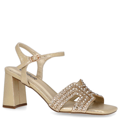 Poszukujesz eleganckich, a zarazem wygodnych butów na specjalną okazję? Jesteś w dobrym miejscu! Cieszące się popularnością, sandałki hiszpańskiej marki MENBUR w cudownej złotej kolorystyce z pewnością Ci się spodobają. Buty na 8 - centymetrowym, stabilnym obcasie to gwarancja stylowego wyglądu i wygody. Buciki wykonano z najwyższą precyzją i dbałością o detale. Przód sandałków wykonano z szerokich, bogato zdobionych pasków co daje to niepowtarzalny efekt wizualny. Klasyczny fason - grubszy obcas podtrzymujący stopę i kombinacja delikatniejszych pasków sprawdzi się we wielu stylizacjach. Zapięcie na klamerkę, umieszczone na wysokości kostki zapewni świetne dopasowanie i stabilność buta.
