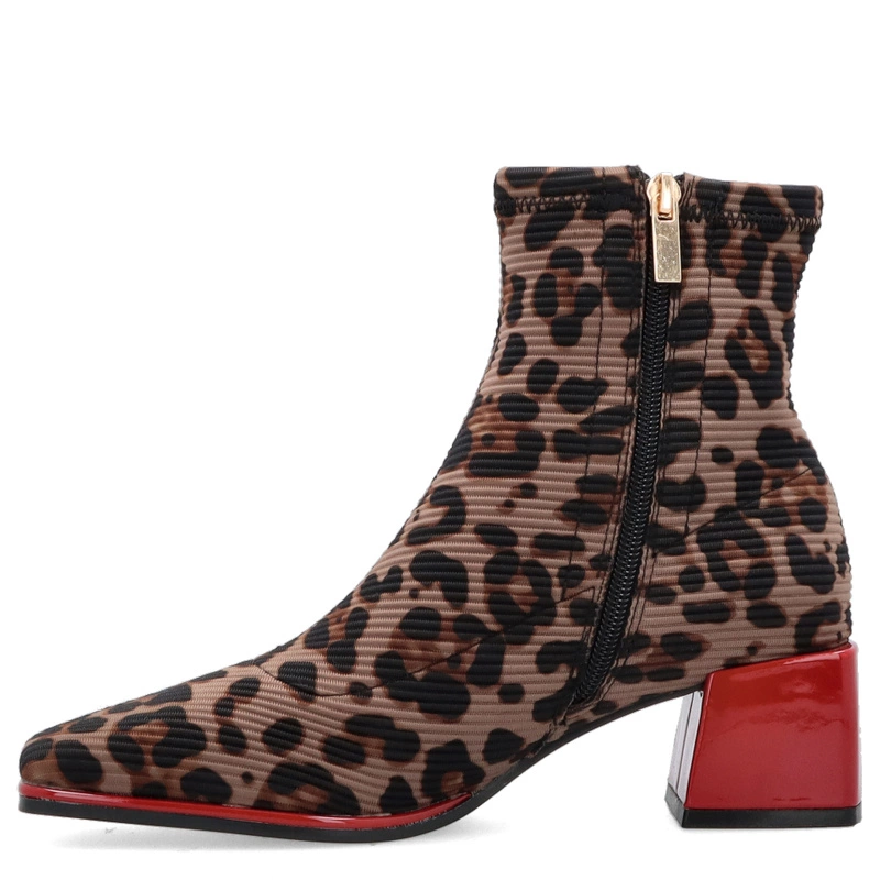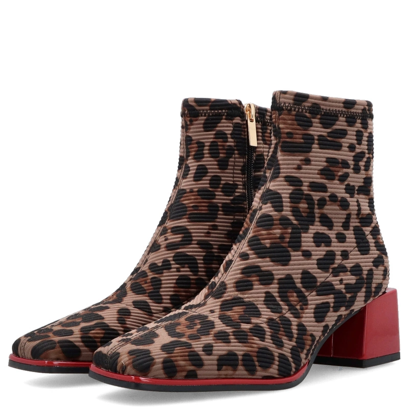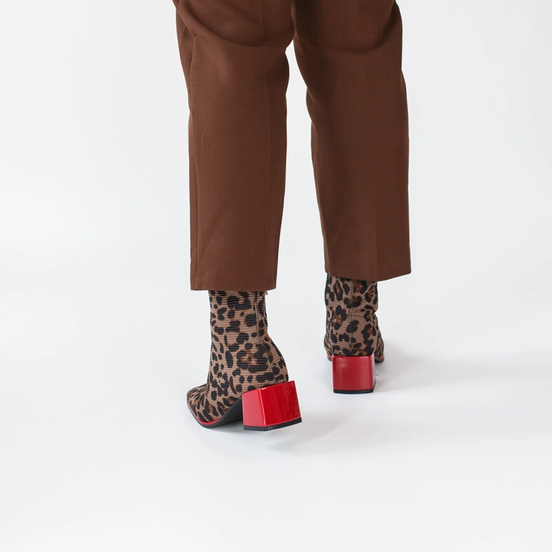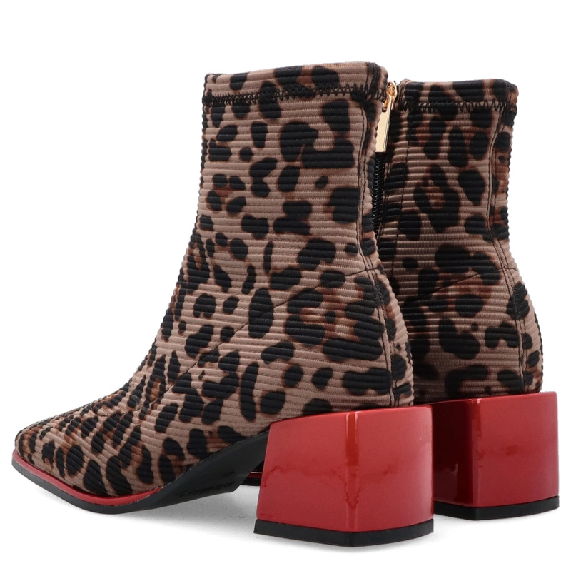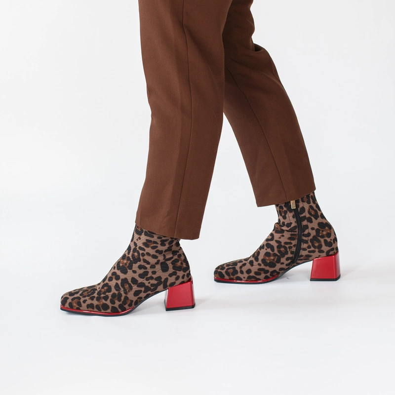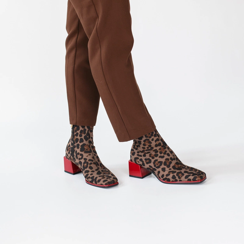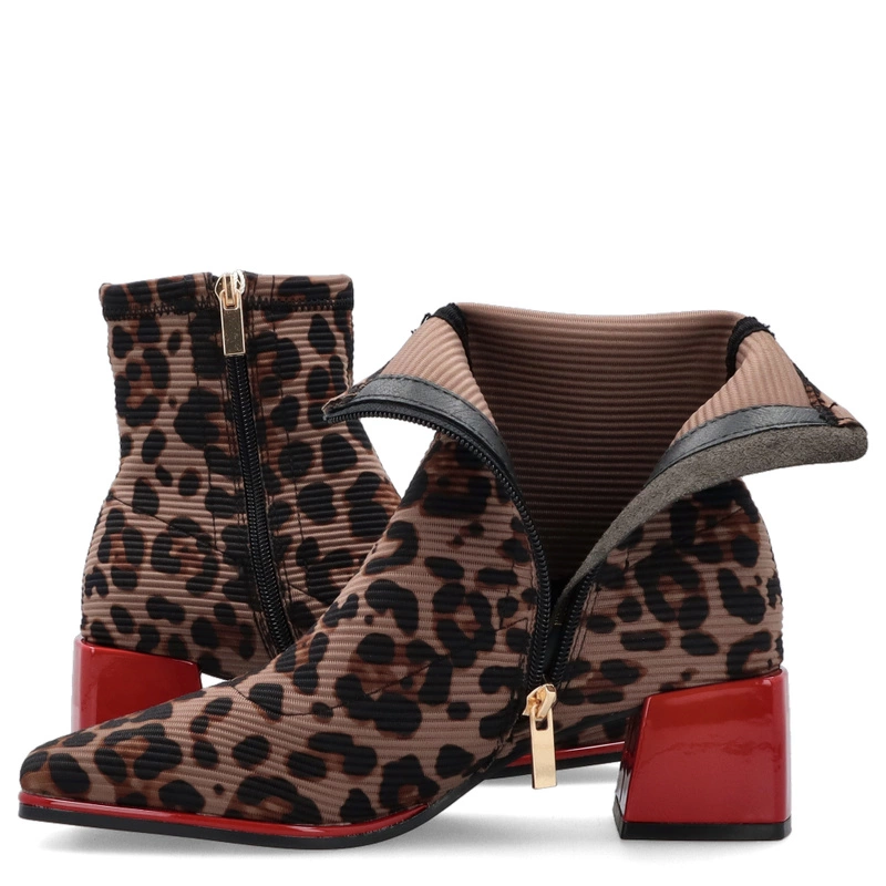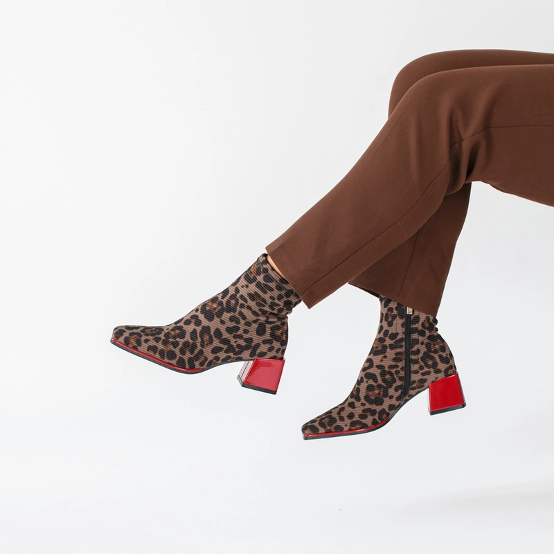 Cholewka wykonana z materiału o wyrazistej panterkowej fakturze to ukłon w stronę najnowszych trendów. Naturalna kolorystyka beżu i brązu sprawia, że botki doskonale komponują się zarówno z prostymi, stonowanymi stylizacjami, jak i bardziej ekstrawaganckimi zestawami.