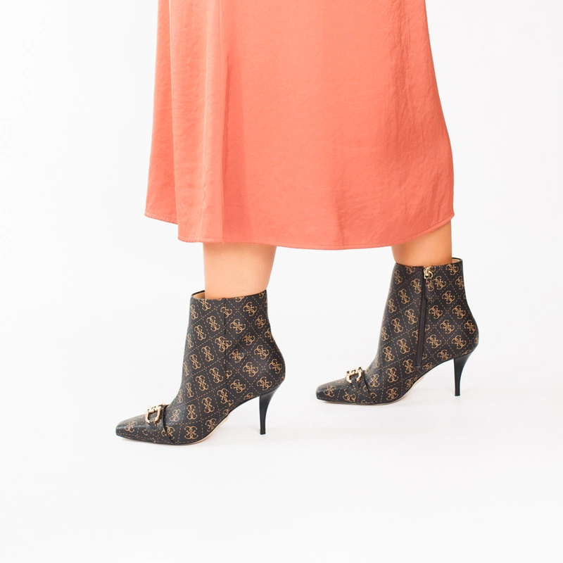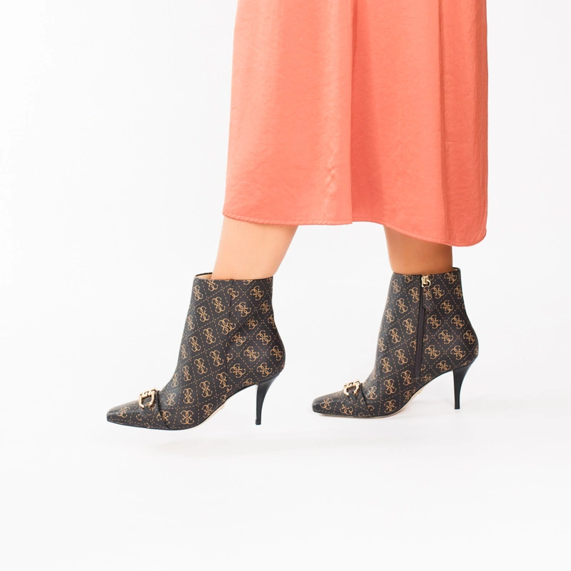 Botki na szpilce GUESS FL8SILLEA10 brązowe – eleganckie buty damskie z klamrą