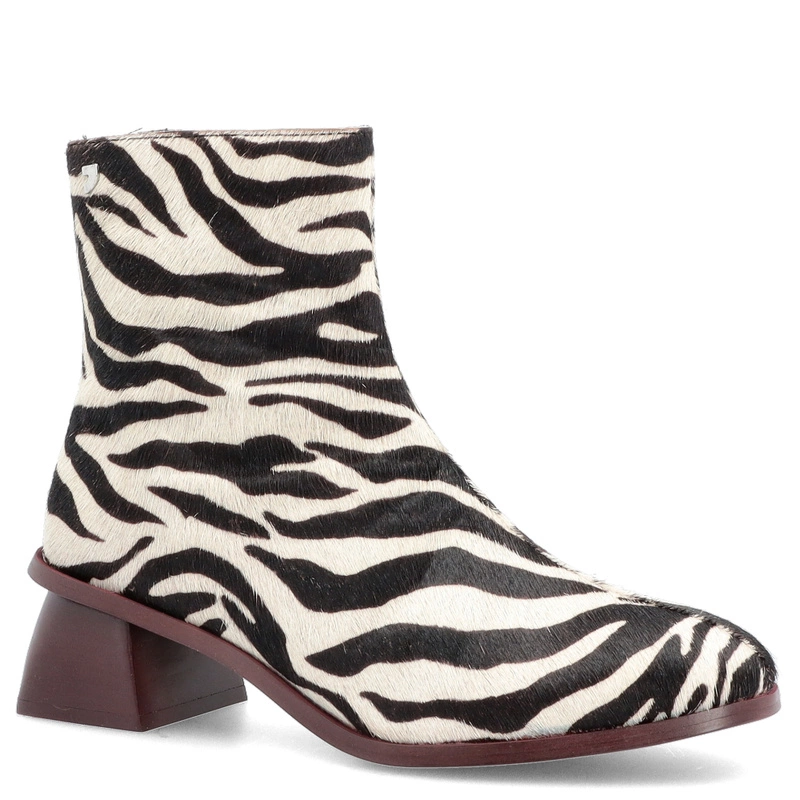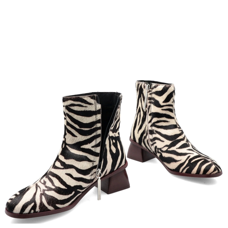 Futrzane botki GIOSEPPO 776872 z nadrukiem w motyw zebry to połączenie nowoczesnego designu, hiszpańskiego kunsztu i niepowtarzalnego charakteru. Wykonane z wysokiej jakości skóry naturalnej, zachwycają unikatową fakturą inspirowaną światem dzikiej natury. To propozycja dla kobiet, które nie boją się wyróżniać i pragną, by ich stylizacje przyciągały spojrzenia. Kontrastowe wykończenia i rzeźbiarski obcas nadają im modowego charakteru, idealnego do miejskich i artystycznych looków.