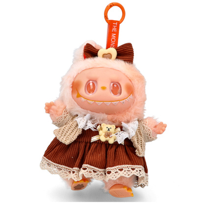Maskotka Labubu w brązowej sukience z misiem – uroczy pluszak z ubrankiem