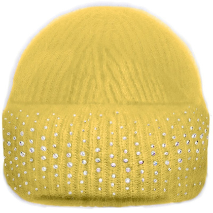 Czapka damska z cyrkoniami Rabionek AN24.09 oliwkowa – styl i ciepło w jednym