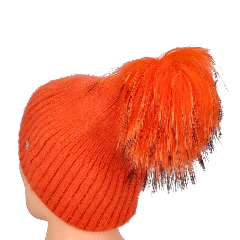 Czapka damska z pomponem Rabionek AN23.06PNJ pomarańczowa – energia i styl na zimę