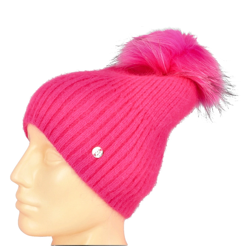 Czapka damska z pomponem Rabionek AN23.06PNJ różowa – kobiecy urok i zimowy komfort