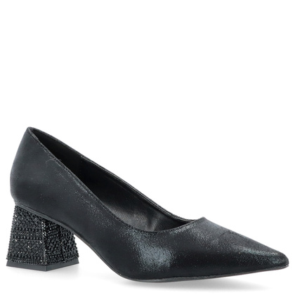 Jeśli marzysz o wyjątkowych butach na grubszym słupku, które zachwycą wszystkich swoim niepowtarzalnym efektem wizualnym, a jednocześnie będą tak wygodne i lekkie, że bez trudu przetańczysz w nich całą noc - to pochodzące z najnowszej kolekcji hiszpańskiej marki premium - MENBUR - zdobione, czarne czółenka na lekkim słupku mogą okazać się doskonałą propozycją właśnie dla Ciebie. Buciki wykonano z najwyższą precyzją i dbałością o detale. Wieczorowe czółenka z kryształkami z kolekcji hiszpańskiej firmy MENBUR. Efektowne czółenka zostały wykonane z najwyższej jakości skóry ekologicznej. Buty doskonałe na specjalne okazje, przyciągają wzrok wspaniale migocząc w sztucznym świetle, będą doskonałym dopełnieniem klasycznej małej czarnej lub stonowanych sukni w różnych kolorach.