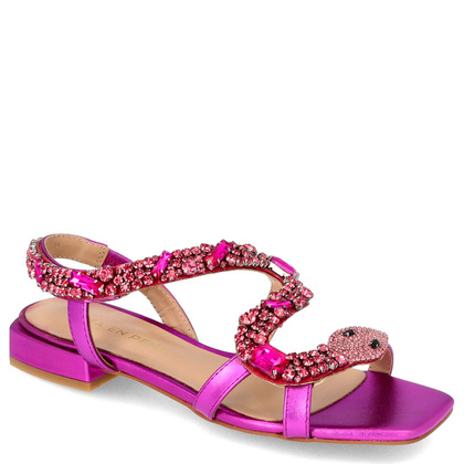 Cenisz sobie komfort oraz wygodę, ale wizualny aspekt jest dla Ciebie równie ważny? Jeśli tak to pochodzące z naszej najnowszej kolekcji sandały ALMA EN PENA będą dla Ciebie odpowiednie! Sandały zostały wykonane z najwyższej jakości naturalnej skóry licowej w pięknym fuksjowym odcieniu. Pasek z przodu wysadzany mieniącymi się kryształkami doskonale podtrzymuje stopę. Ten stylowy motyw został pociągnięty w kierunku górnej części, tworząc tym samym wzór węża- niesamowicie efektowny zabieg! Solidne zapięcie z wykorzystaniem uniwersalnej i ponadczasowej sprzączki sprawia, że bez trudu dopasujesz buty do szerokości stopy.