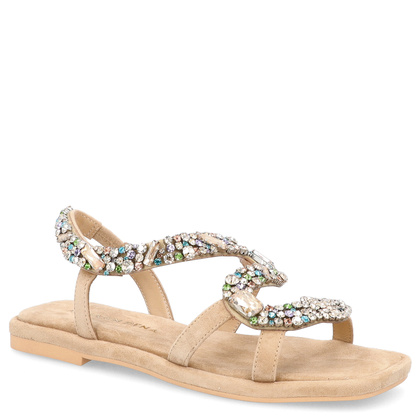 Cenisz sobie komfort oraz wygodę, ale wizualny aspekt jest dla Ciebie równie ważny? Jeśli tak to pochodzące z naszej najnowszej kolekcji sandały ALMA EN PENA będą dla Ciebie odpowiednie! Sandały zostały wykonane z najwyższej jakości naturalnej skóry zamszowej w delikatnym odcieniu beżu. Pasek z przodu wysadzany mieniącymi się kryształkami doskonale podtrzymuje stopę. Ten stylowy motyw został pociągnięty w kierunku górnej części, tworząc tym samym wzór węża - niesamowicie efektowny zabieg! Solidne zapięcie z wykorzystaniem uniwersalnej i ponadczasowej sprzączki sprawia, że bez trudu dopasujesz buty do szerokości stopy.
