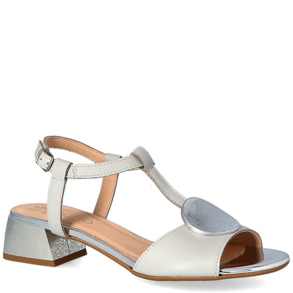 Wzrok przyciąga okrągła ozdoba o ciekawej fakturze, i błyszczące akcenty. Naturalna skóra, którą wykorzystano w tym modelu wyróżnia się wyjątkową miękkością, dzięki czemu doskonale dopasuje się do kształtu stopy. Wnętrze buta zostało także wykonane ze skóry, dzięki czemu model jest wyjątkowo komfortowy w użytkowaniu. Posiadaczki wrażliwych, podatnych na otarcia stóp z pewnością docenią te wygodne sandałki. 4 - centymetrowy obcas o geometrycznym kształcie jest szeroki i stabilny, jego wysokość zapewnia optymalne ułożenie stopy. Szukasz sandałek na wesele, komunię lub letnie przyjęcie? Model GABI sprawdzi się wyśmienicie, zapewni doskonały wygląd i niezbędną wygodę. Unikasz obcasów, ale chcesz wyglądać elegancko? Te sandałki zapewnią Ci nieskazitelny wygląd bez rezygnowania z wygody. Dobierz zgrabną torebkę w srebrzystej tonacji, a z pewnością zachwycisz wszystkich! Niskie sandałki sprawdzą się także na co dzień, świetnie prezentują się w letnich, biurowych stylizacjach. Sukienka czy kostium w palecie chłodnych barw, czy jasne lniane spodnie idealnie dopełnią całości.