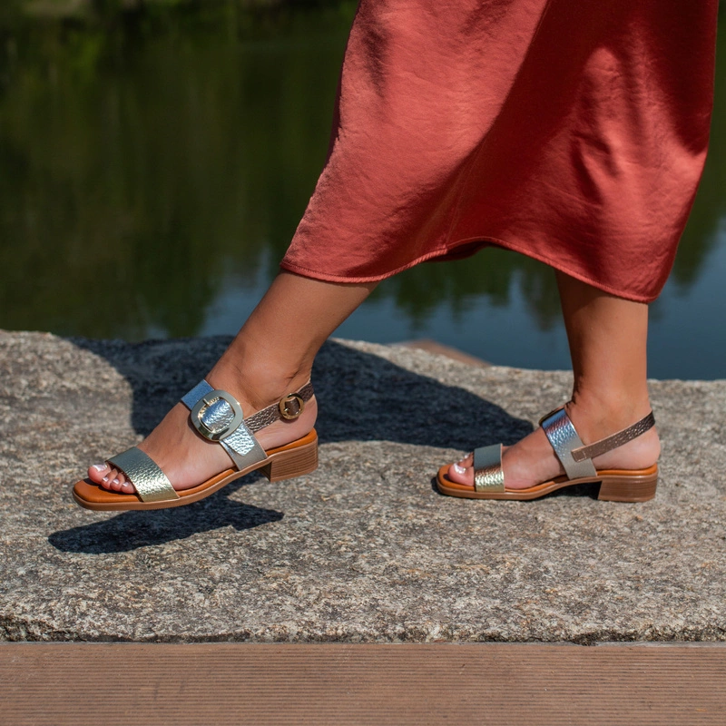 Eleganckie sandały ze skóry - OH! MY SANDALS 5609 ZŁOTO SREBRNE