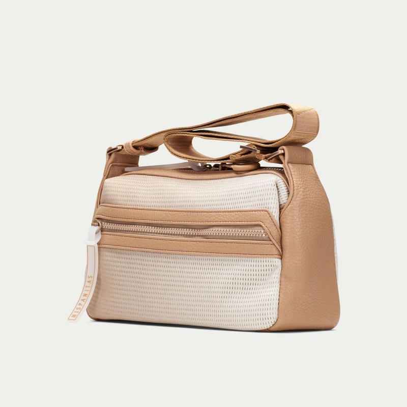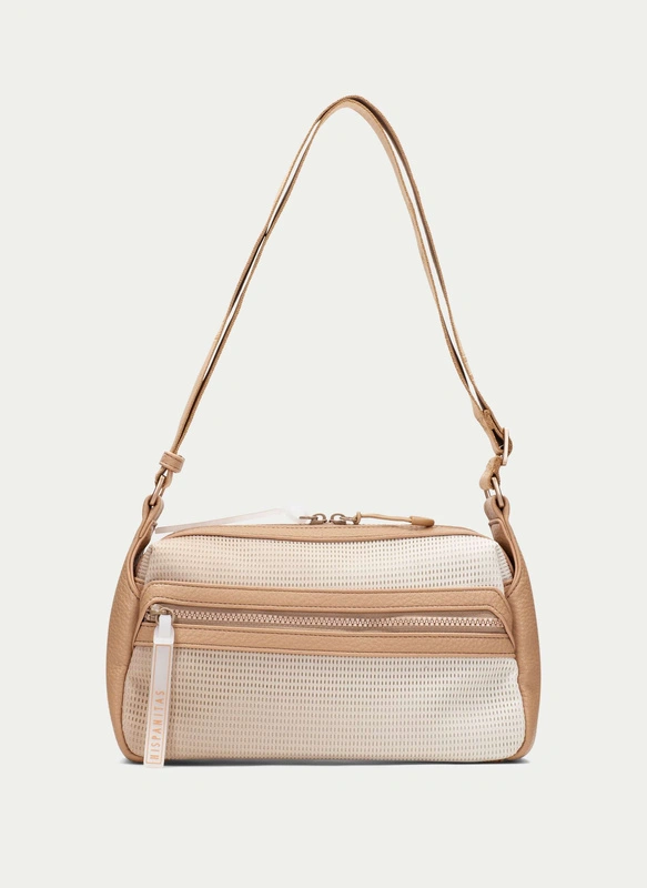 Beżowa kolorystyka nadaje torebce lekkości i sprawia, że jest niezwykle łatwa do stylizowania. Strukturalny front podkreśla nowoczesny charakter modelu, a jasne lamówki i detale przy zamkach delikatnie akcentują jego linię. To propozycja, która świetnie sprawdzi się zarówno w jasnych, jak i bardziej kontrastowych zestawieniach kolorystycznych.