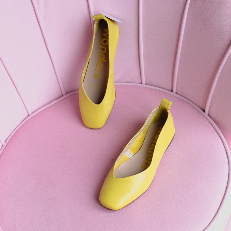 Hiszpańskie baleriny z miękkiej skóry Wonders A-86141 żółte – lekkość, elastyczność i nowoczesny styl