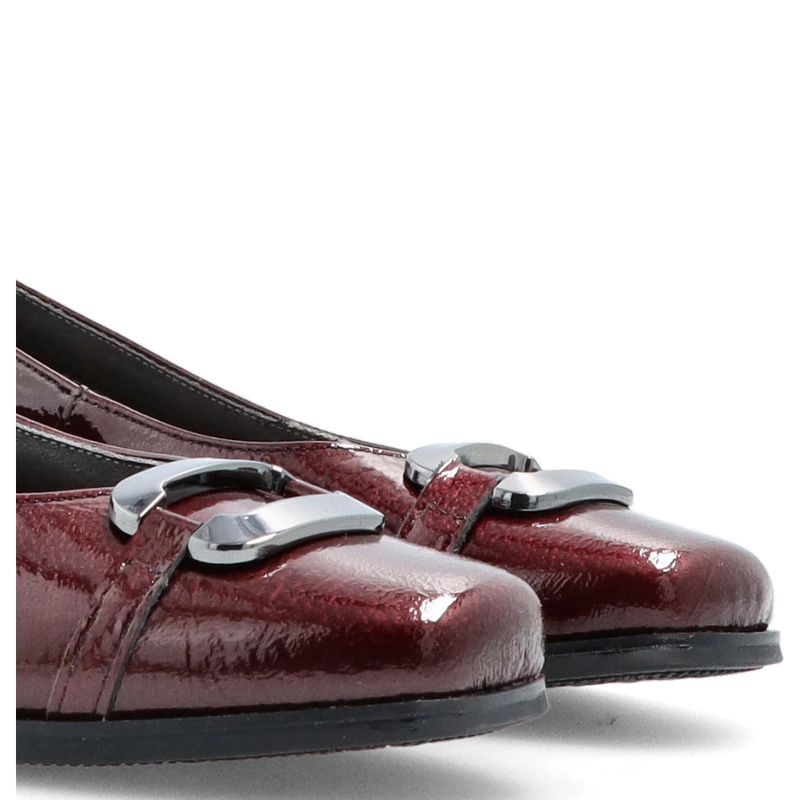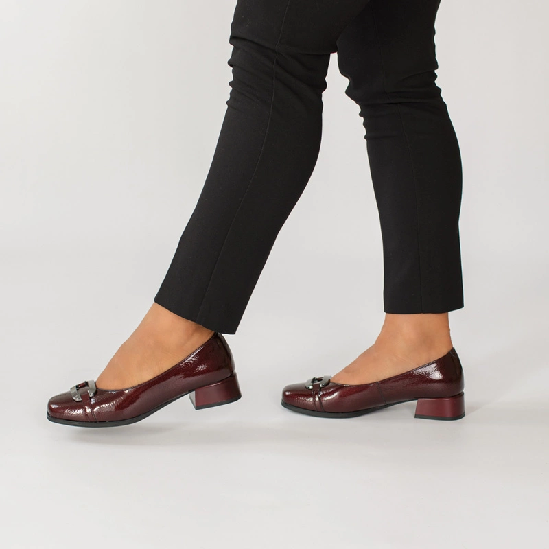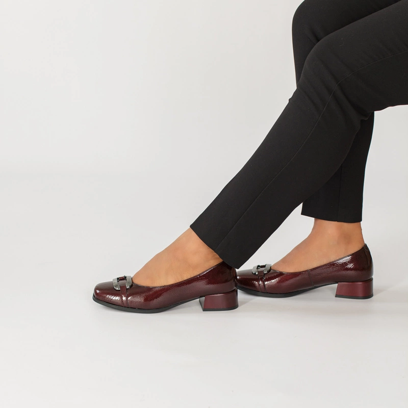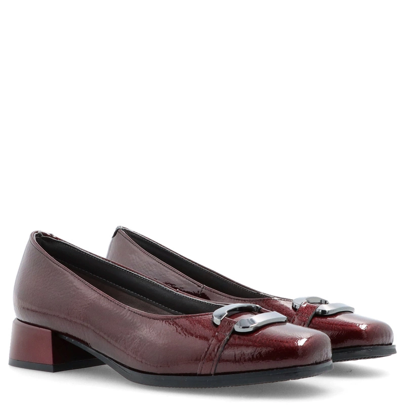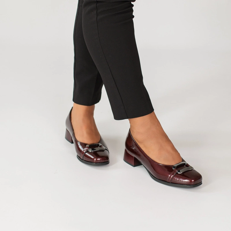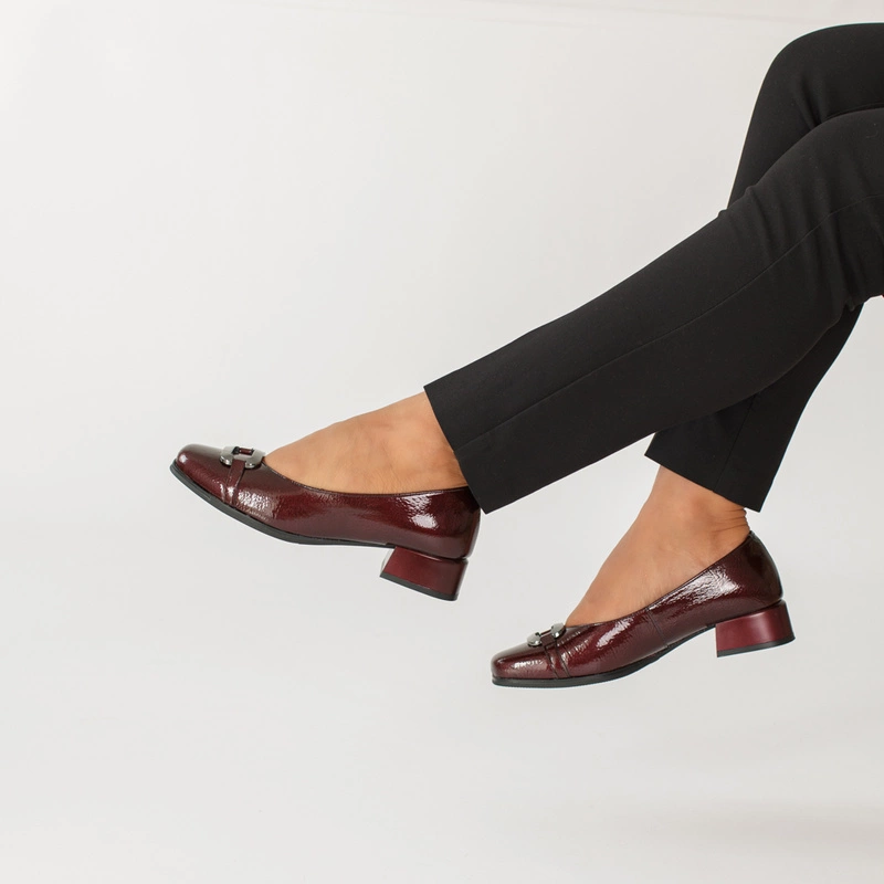 Bordowe czółenka PITILLOS 10812 to połączenie klasycznej formy z modnym akcentem kolorystycznym. Wykonane z wysokiej jakości skóry naturalnej lakierowanej, zachwycają subtelnym połyskiem i głębią odcienia. Niski, stabilny obcas gwarantuje wygodę przez cały dzień, a elegancka ozdoba na nosku nadaje butom wyrafinowanego charakteru. Dzięki wyjmowanej wkładce model ten jest praktyczny i łatwy w utrzymaniu czystości, a dodatkowo zapewnia możliwość dopasowania do indywidualnych potrzeb.