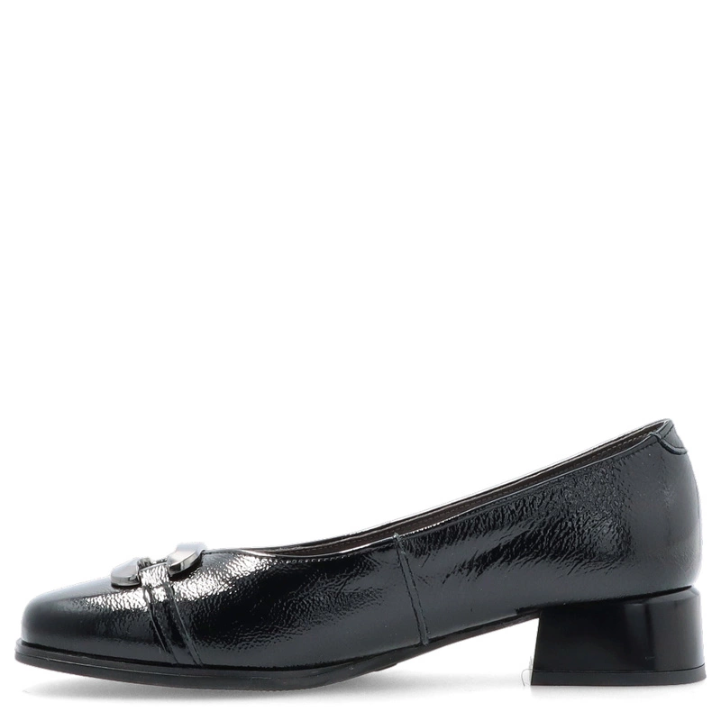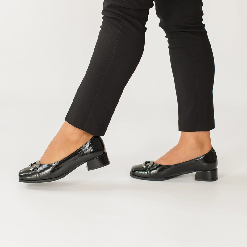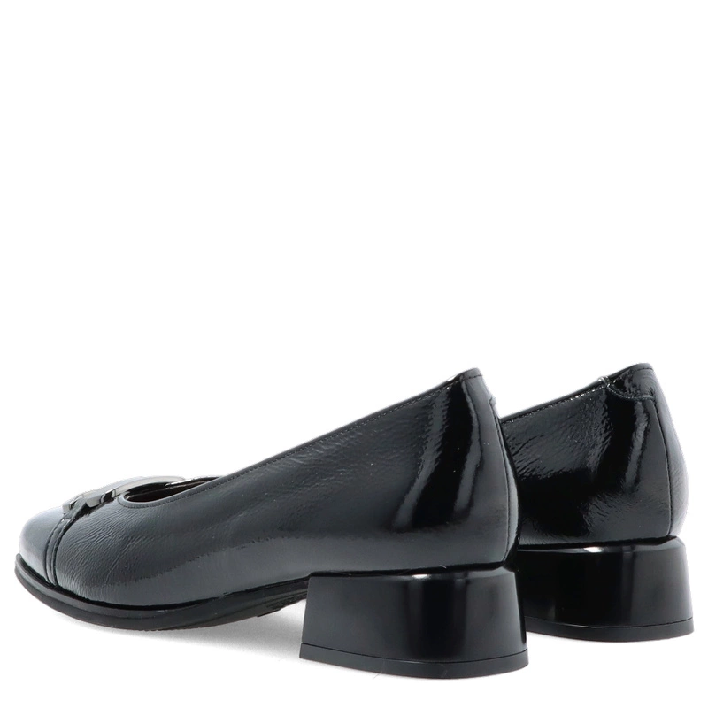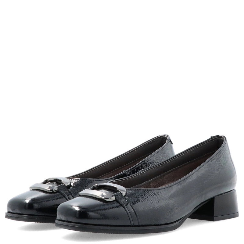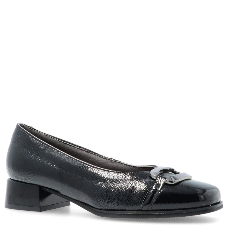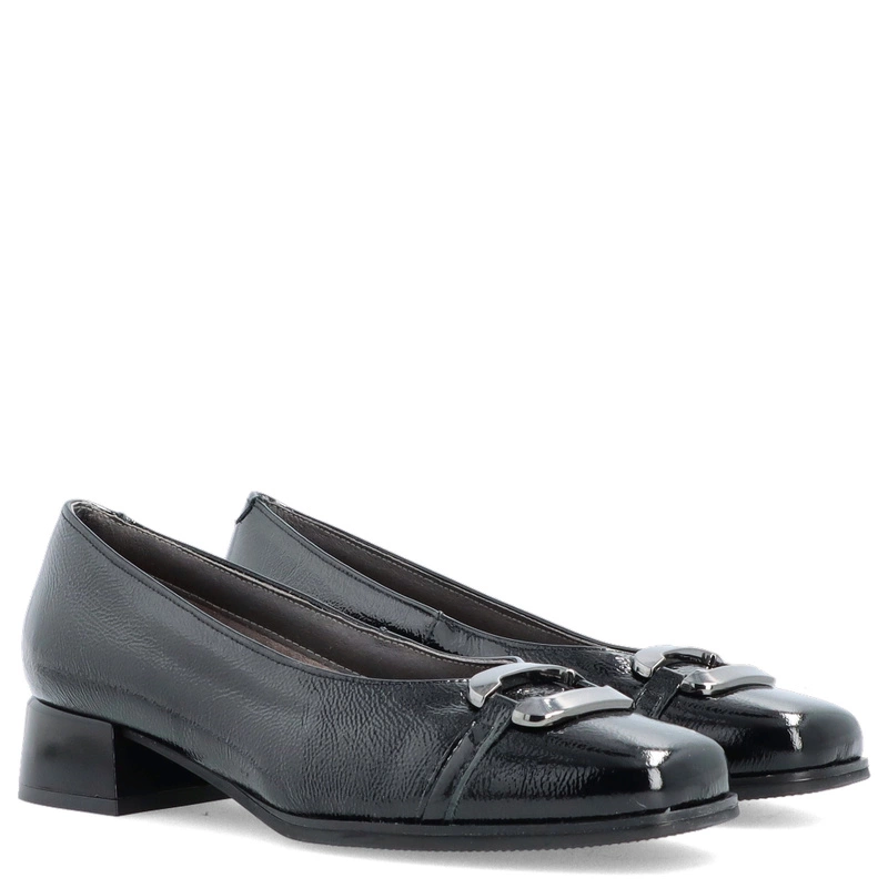Czarne czółenka PITILLOS 10812 to kwintesencja klasy i komfortu, idealna dla kobiet, które poszukują eleganckiego obuwia do codziennego użytku i na wyjątkowe okazje. Wykonane z wysokiej jakości skóry naturalnej lakierowanej, zachwycają subtelnym połyskiem i starannym wykończeniem. Niski, stabilny obcas zapewnia wygodę przez cały dzień, a delikatna ozdoba na nosku dodaje butom wyjątkowego charakteru.