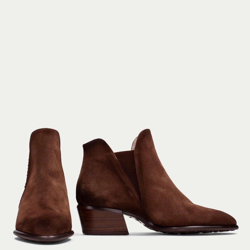 Krótsza cholewka ozdobiona subtelnymi przeszyciami i charakterystycznym, lekko ściętym obcasem nawiązuje do klasycznych kowbojek, jednocześnie nadając im nowoczesny sznyt. Dzięki temu model sprawdza się zarówno w codziennych stylizacjach, jak i jako wyjątkowy akcent w bardziej odważnych zestawach. Brązowy kolor dodatkowo podkreśla ich ponadczasowy charakter.