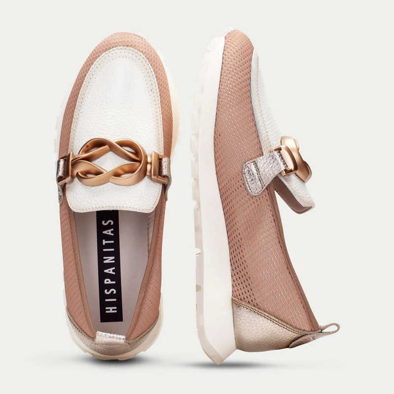 Hiszpańskie półbuty Hispanitas CHV264520 beżowe – elegancka lekkość z biżuteryjną klamrą