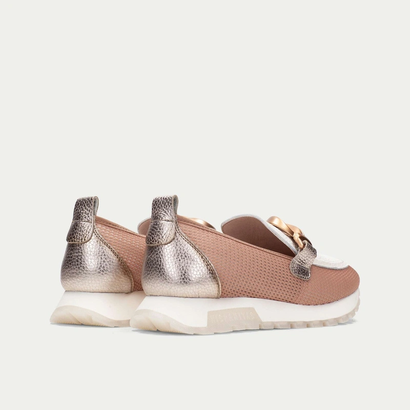 Beżowe półbuty Hispanitas CHV264520 to połączenie subtelnej elegancji i codziennego komfortu w nowoczesnym wydaniu. Model wyróżnia się przewiewną, tekstylną strukturą w ciepłym beżowym odcieniu oraz dekoracyjną, metaliczną klamrą, która nadaje całości biżuteryjnego charakteru. To idealna propozycja dla kobiet, które szukają stylowych butów na co dzień.