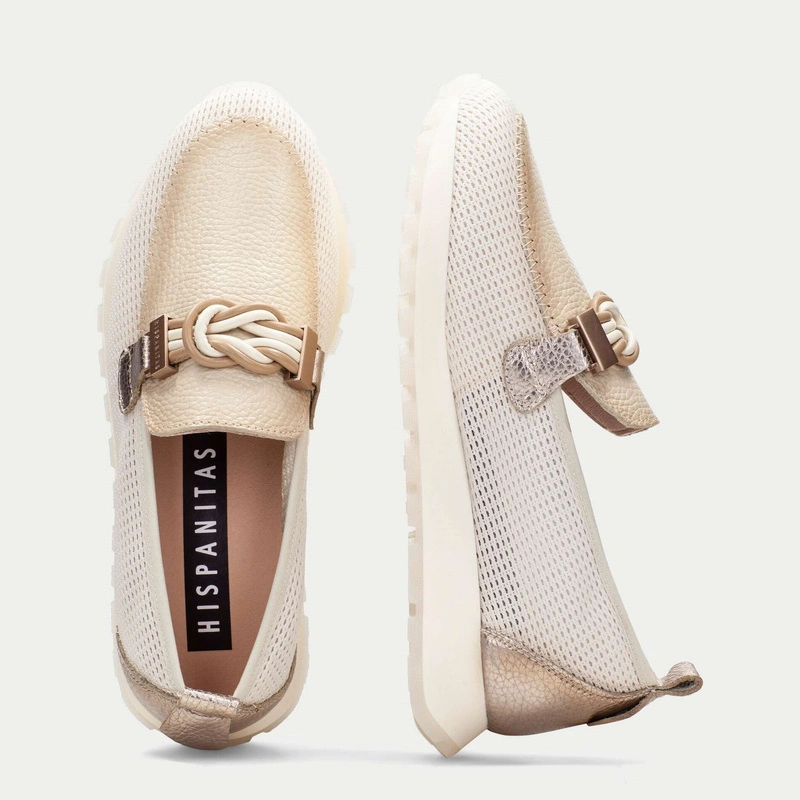 Hiszpańskie półbuty Hispanitas HV264857 kremowe – przewiewna lekkość i elegancki detal