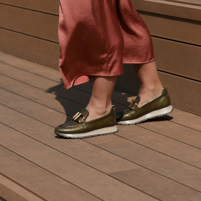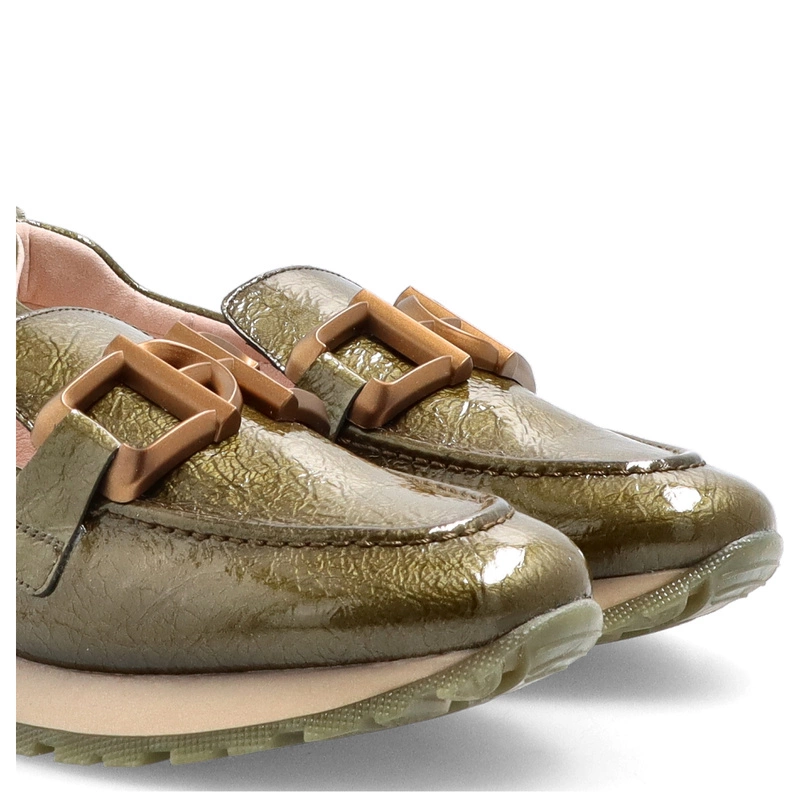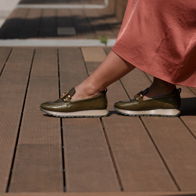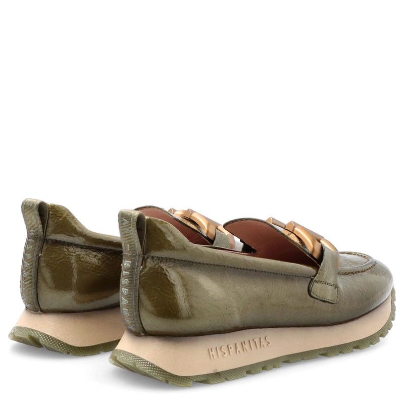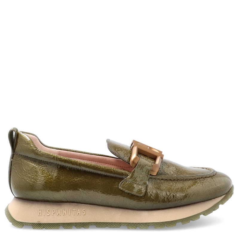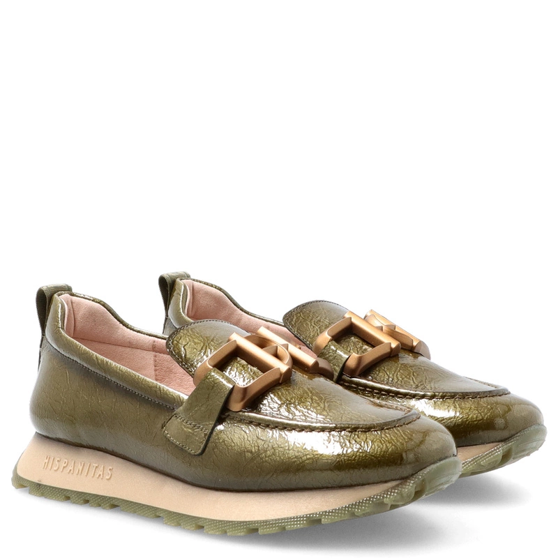 Khaki lakierowane półbuty damskie Hispanitas HI254386 – eleganckie buty premium na wyższej podeszwie