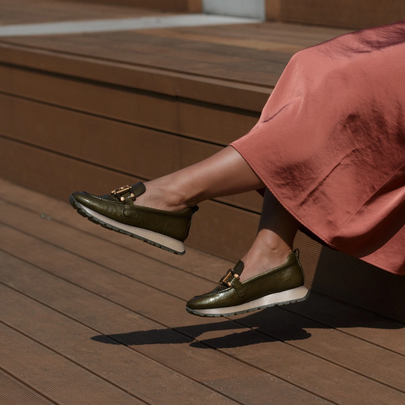 Hispanitas HI254386 w kolorze khaki to lakierowane półbuty damskie premium, które łączą nowoczesny wygląd z codzienną funkcjonalnością. Połyskujące wykończenie nadaje im elegancji, a wyższa podeszwa dodaje lekkości i nowoczesnego charakteru. To model idealny dla kobiet, które lubią wyróżniać się stylem, nie rezygnując z komfortu na co dzień.