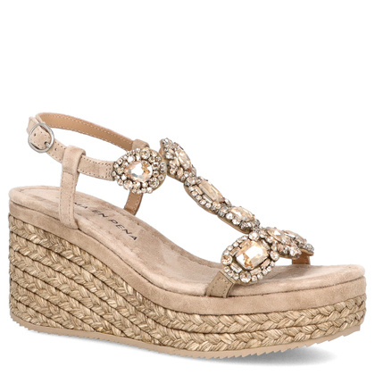 Hiszpańskie sandały na koturnie - ALMA EN PENA V251350 BEŻOWE