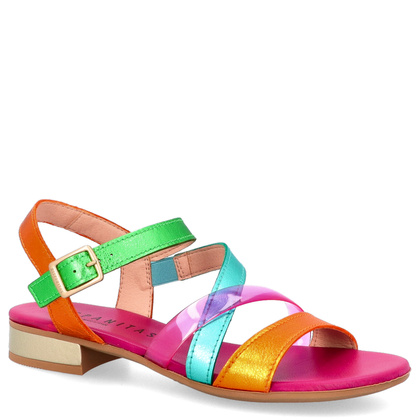 Szukasz efektownych, lekkich butów na nadchodzące ciepłe dni? Zwróć uwagę na najnowsze sandałki z kolekcji HISPANITAS! Te stylowe buciki doskonale łączą wygodę i elegancki wygląd. Sandałki na płaskim obcasie, z wygodnym okrągłym noskiem, wykonano z miękkiej naturalnej skóry licowej. Uwagę zwraca piękny kolor - najmodniejsze w tym sezonie odcienie soczystego pomarańczu, zieleni, różu i turkusu. Oddychająca skórzana wkładka wyposażona w innowacyjną technologię TRIFLOW zapewnia doskonałą amortyzację i stabilność. Dzięki wyjątkowej miękkości i przepuszczalności powietrza zapobiega odparzeniom, na jakie narażone są nasze stopy — zwłaszcza podczas letnich upałów. Płaska podeszwa sprawia, że obuwie jest stabilne i bardzo komfortowe oraz idealnie sprawdzi się na co dzień podczas maratonu obowiązków! Sandałki posiadają klasyczne zapięcie na sprzączkę co gwarantuje idealne dopasowanie do stopy!