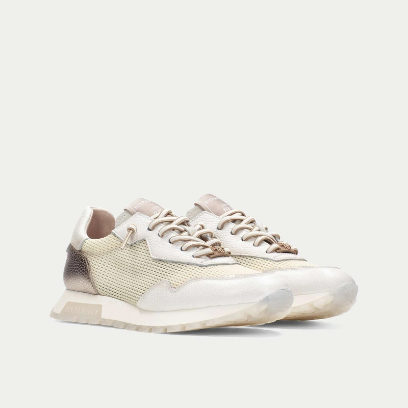 Kremowe sneakersy Hispanitas HV264825 to nowoczesny model, który łączy sportową wygodę z subtelną, kobiecą estetyką. Uwagę przyciąga przewiewna siatka w pastelowym, bananowym odcieniu, która pięknie ożywia jasną kolorystykę butów i nadaje im świeżego, lekkiego charakteru. To idealny wybór na codzienne stylizacje w cieplejszym sezonie.