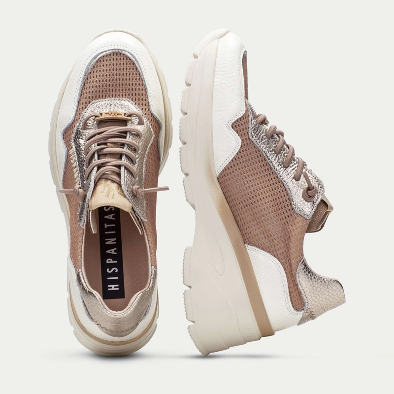 Beżowe sneakersy Hispanitas z przewiewną strukturą i metalicznymi detalami