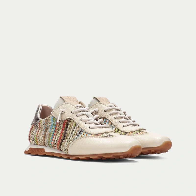 Sneakersy Hispanitas RHV264596 w wersji multikolor to model z linii premium, który wyróżnia się unikalnym wzornictwem i wyjątkową estetyką. Uwagę przyciąga efektowna, ręcznie wyglądająca plecionka w wielobarwnych odcieniach, zestawiona z jasnymi elementami cholewki i kontrastową podeszwą. To propozycja dla kobiet, które lubią nieoczywiste detale i modę z charakterem.