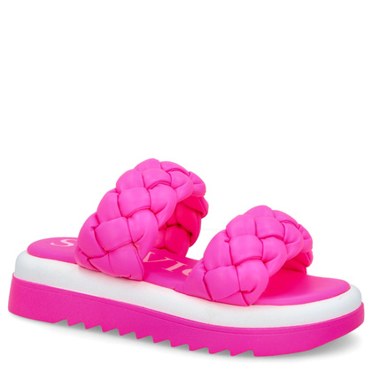 Szalenie efektowne klapki z kolekcji marki SCAVIOLA to propozycja właśnie dla Ciebie! Modne klapki to obowiązkowa pozycja w każdej letniej garderobie, przewiewne i wygodne doskonale sprawdzą się w ciepłe dni. Neonowe klapki o klasycznym fasonie zostały wykonane z najwyższej jakości materiałów, dzięki czemu będą idealne na ciepłą porę roku. Przednia część buta posiada dwa paski, zaplecione w warkocze. Grubsza podeszwa zapewnia prawidłowe ułożenie stopy oraz komfort podczas codziennego użytkowania.