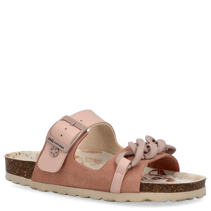 Anekke Memories 40391-402 to wyjątkowe klapki damskie, które urzekają romantyczną estetyką i wysokim komfortem noszenia. Utrzymane w pastelowych odcieniach różu, z dekoracyjnym łańcuchem i regulowanym paskiem, doskonale wpisują się w kobiece, letnie stylizacje. To model, który idealnie sprawdzi się na spacer, do miasta, a także jako modny dodatek podczas letniego wypoczynku.
