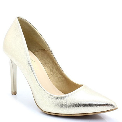 Piękne damskie szpilki o klasycznym fasonie wykonane przez renomowanego producenta - firmę TYMOTEO. Czółenka zostały wykonane z najwyższej jakości skóry naturalnej w pięknym złotym kolorze. Buty bardzo ładnie będą prezentowały się do sukni ślubnej. Środek butów również został wykonany ze skóry naturalnej, a sam model jest bardzo dobrze wyprofilowany, co zdecydowanie wpływa na komfort użytkowania. Perfekcyjnie do stroju wieczorowego. Wygodne i wyjątkowo eleganckie. Idealne również na studniówkę, karnawał, lub inne imprezy, ale do wykorzystania również w codziennym użytkowaniu. Do butów dodajemy zapasowy komplet fleków, tak abyś mogła dłużej bezstresowo cieszyć się z użytkowania zakupionego obuwia.