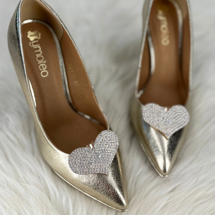 Ozdobne klipsy do butów złote serca z kryształkami! Klipsy pochodzące od marki TYMOTEO LOVE - nasza autorska unikalna kolekcja biżuterii do butów, Klipsy wykonane ręcznie, z miłością i starannością. Niepowtarzalne wzory będą stylowym i eleganckim dodatkiem do klasycznego obuwia. Kształt klipsa w formie uroczego złotego serca bogato zdobionego lśniącymi, mieniącymi się kryształkami. Jest to błyszczący i elegancki dodatek. Ozdoby mocowane są za pomocą specjalnego klipsa, który bez problemu utrzymuje się na obuwiu, nie odkształca się oraz nie przeszkadza w użytkowaniu. Lubisz błyskotki? Kup już dziś biżuterię do Twoich butów i odmień w nie do poznania!