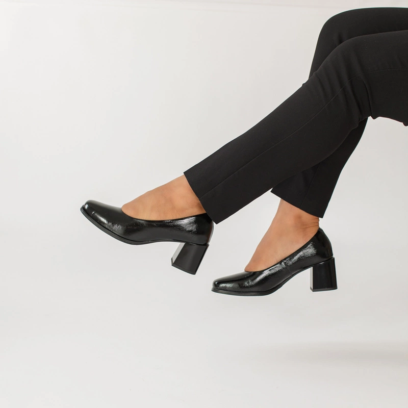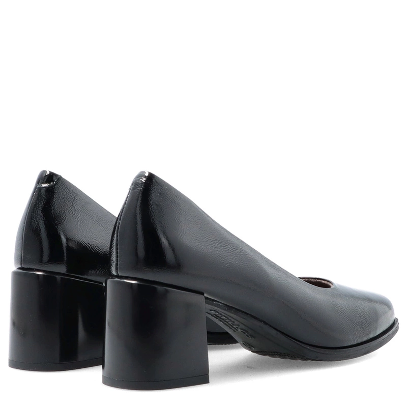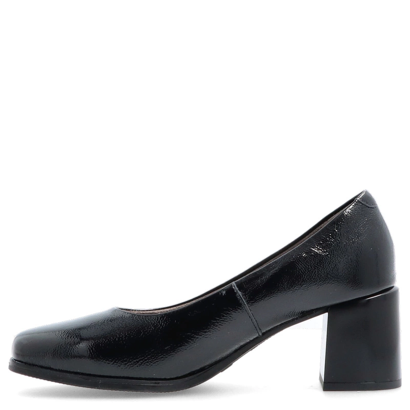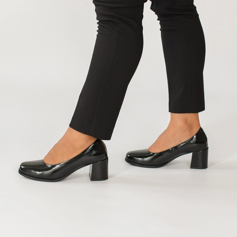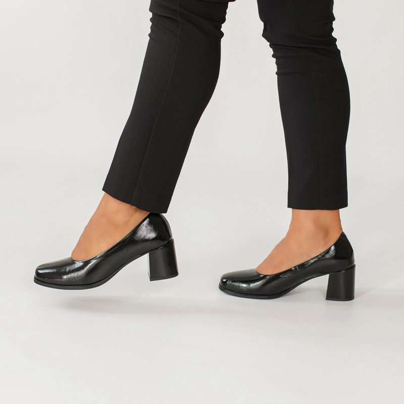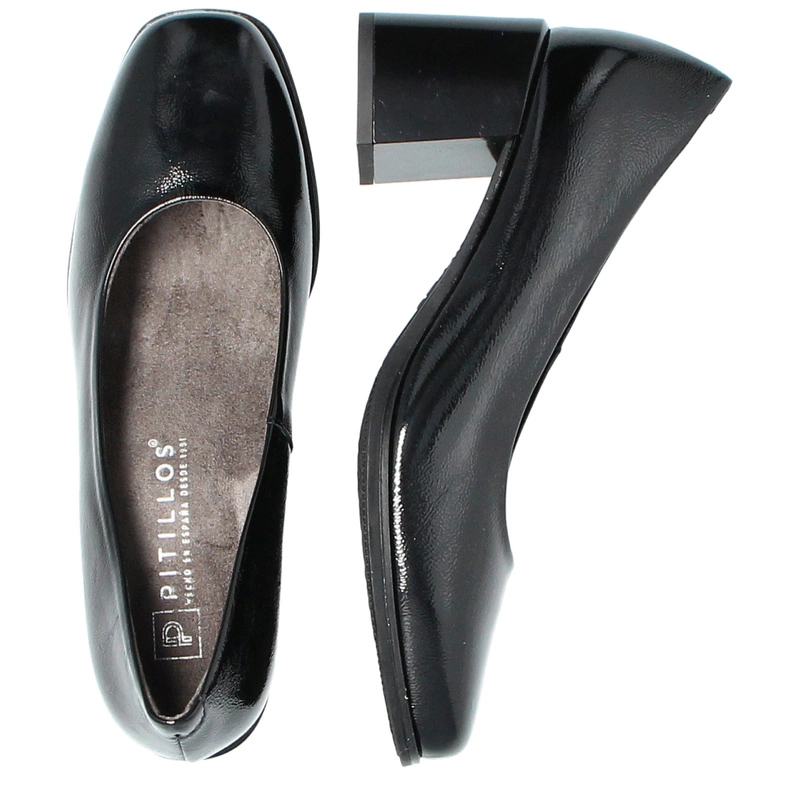 Czarne czółenka PITILLOS 10830 to doskonały wybór dla kobiet, które cenią połączenie klasycznego stylu i komfortu dopasowanego do szerszych stóp. Wykonane z wysokiej jakości gładkiej skóry naturalnej lakierowanej, zachwycają eleganckim połyskiem i starannym wykończeniem. Stabilny, średniej wysokości obcas dodaje szyku, a jednocześnie pozwala cieszyć się wygodą przez cały dzień.