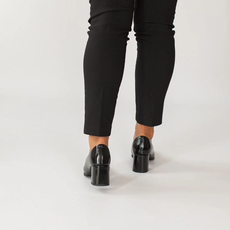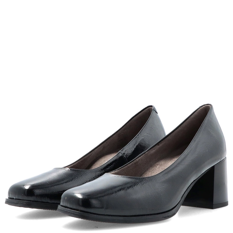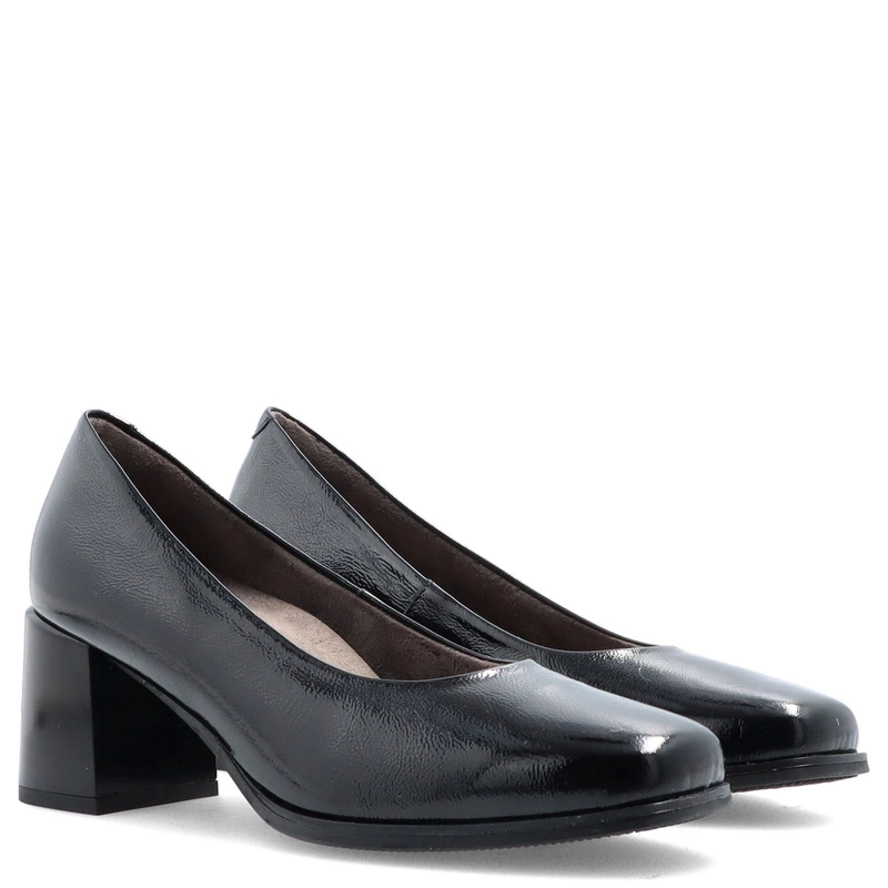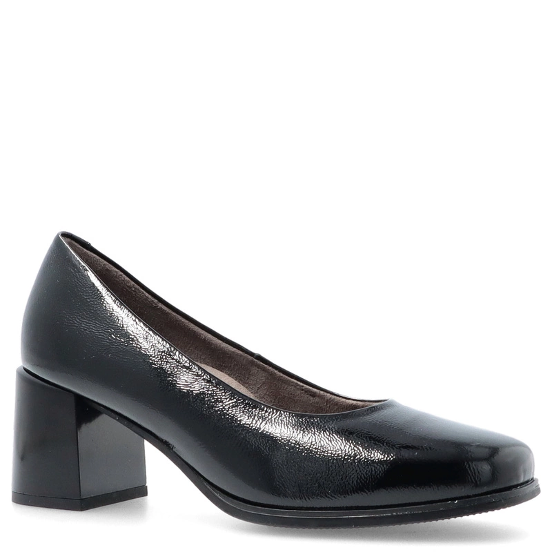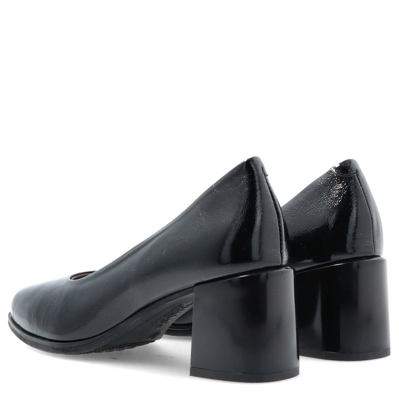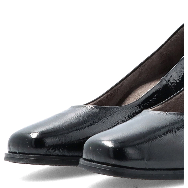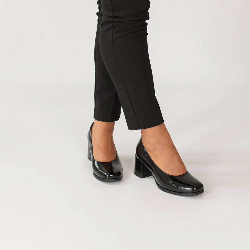 Czarne czółenka PITILLOS 10830 to doskonały wybór dla kobiet, które cenią połączenie klasycznego stylu i komfortu dopasowanego do szerszych stóp. Wykonane z wysokiej jakości gładkiej skóry naturalnej lakierowanej, zachwycają eleganckim połyskiem i starannym wykończeniem. Stabilny, średniej wysokości obcas dodaje szyku, a jednocześnie pozwala cieszyć się wygodą przez cały dzień.