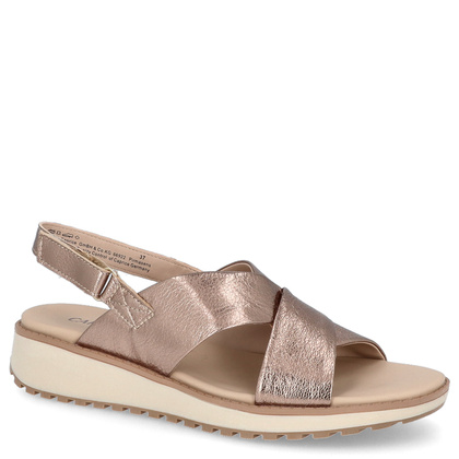 Poszukujesz butów na nadchodzący sezon letni? Kochasz stylowe obuwie, lecz równie ważna jak wygląd jest dla Ciebie wygoda? Spójrz tylko na najnowsze sandałki CAPRICE! Ten znany niemiecki producent od lat specjalizuje się w tworzeniu butów, które łączą ciekawe wzornictwo z zachwycającą wygodą. Cholewka wykonana została z miękkiej skóry naturalnej w złotym odcieniu. Sandały posiadają zapinanie na rzep, dzięki czemu dostosujesz je idealnie do szerokości swojej stopy. Wkładka wykonana z naturalnej skóry zapewni odpowiednią cyrkulację podczas upalnych dni! But stabilnie trzyma stopę i do tego świetnie prezentują się na nodze.