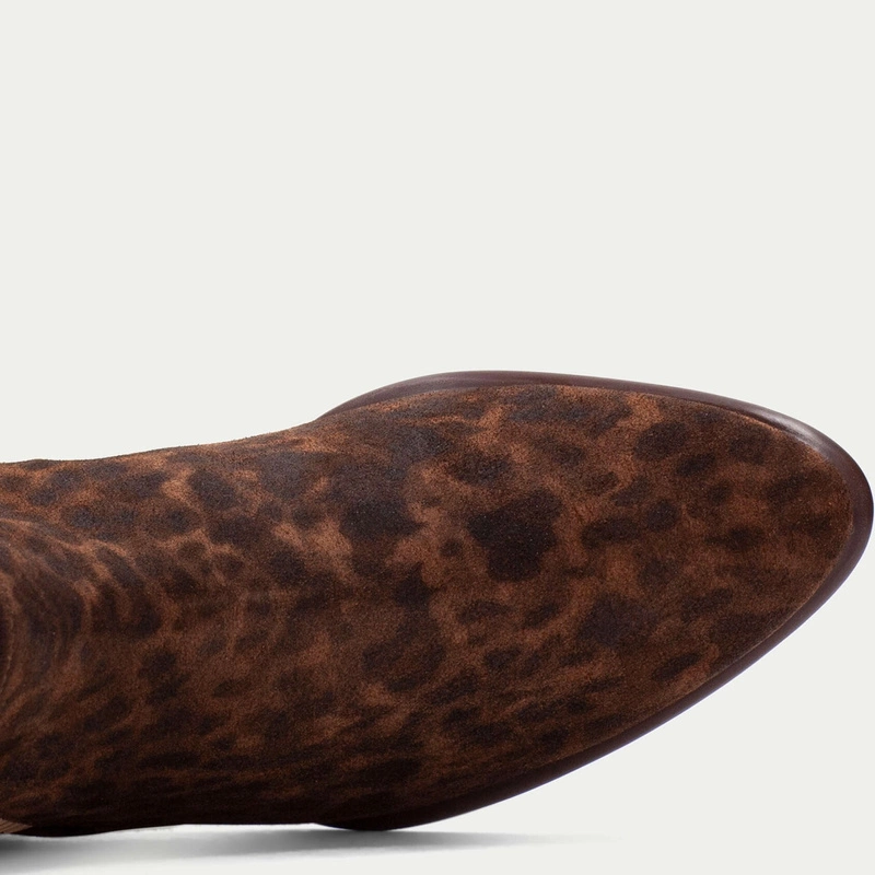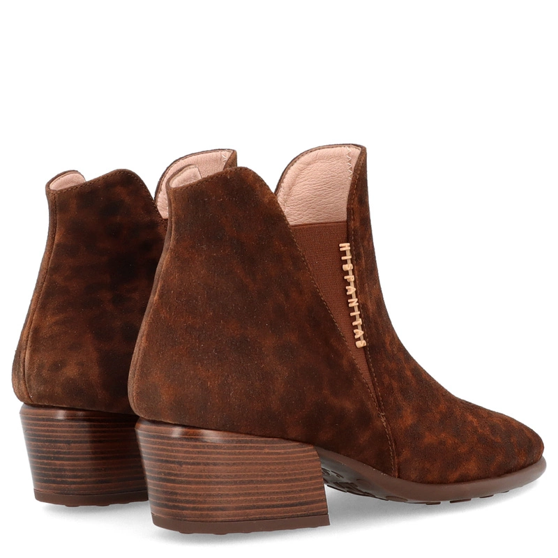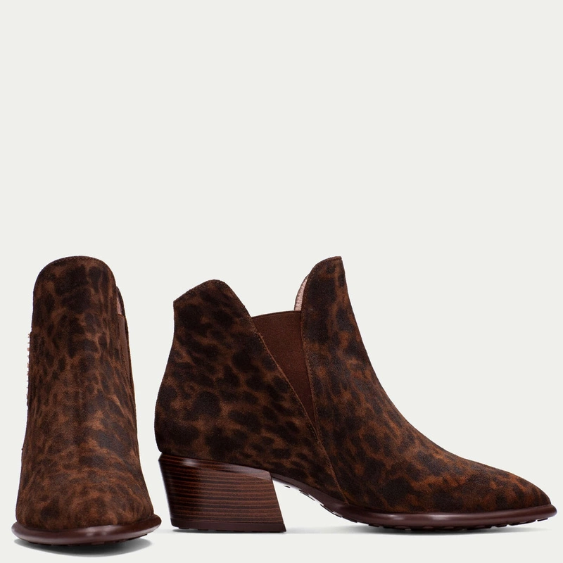 Cholewka wykonana z wysokogatunkowej skóry naturalnej otula stopę elegancką miękkością i trwałością. Wyrazisty panterkowy print stanowi prowokacyjny, ale stylowy akcent – niczym tajemnicze spojrzenie, które zaprasza do odkrycia więcej. Konstrukcja z gumkami i subtelnie podniesionym obcasem daje efekt kobiecej sylwetki i stabilności w codziennym rytmie.