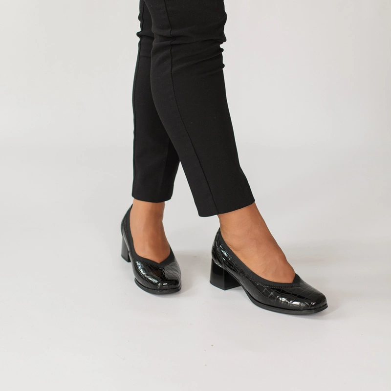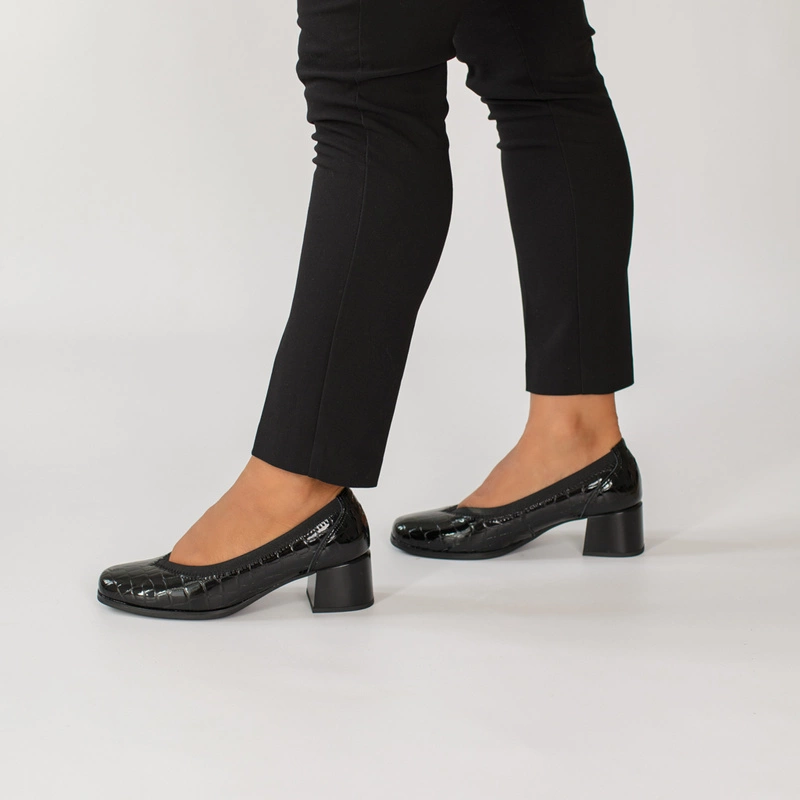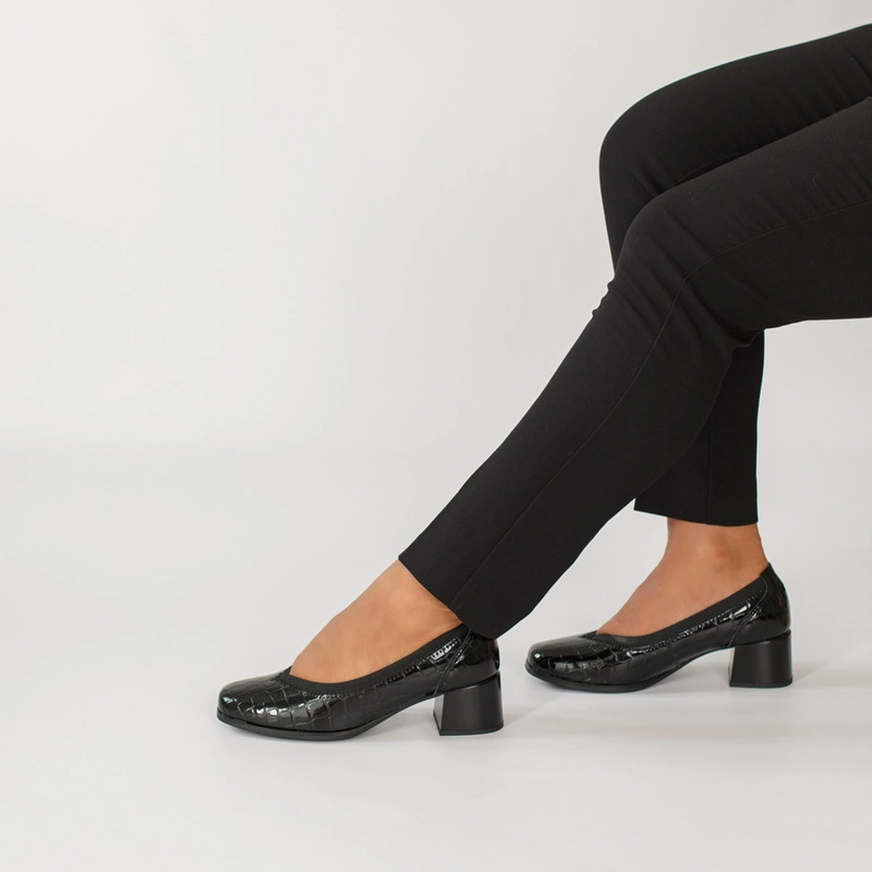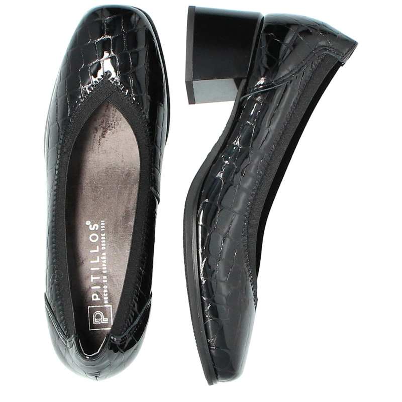 Lakierowane czółenka na obcasie PITILLOS 10820 czarne – szyk i wygoda w eleganckim wydaniu