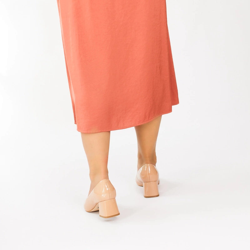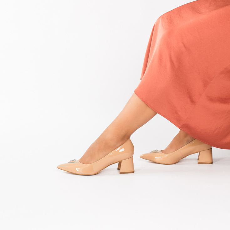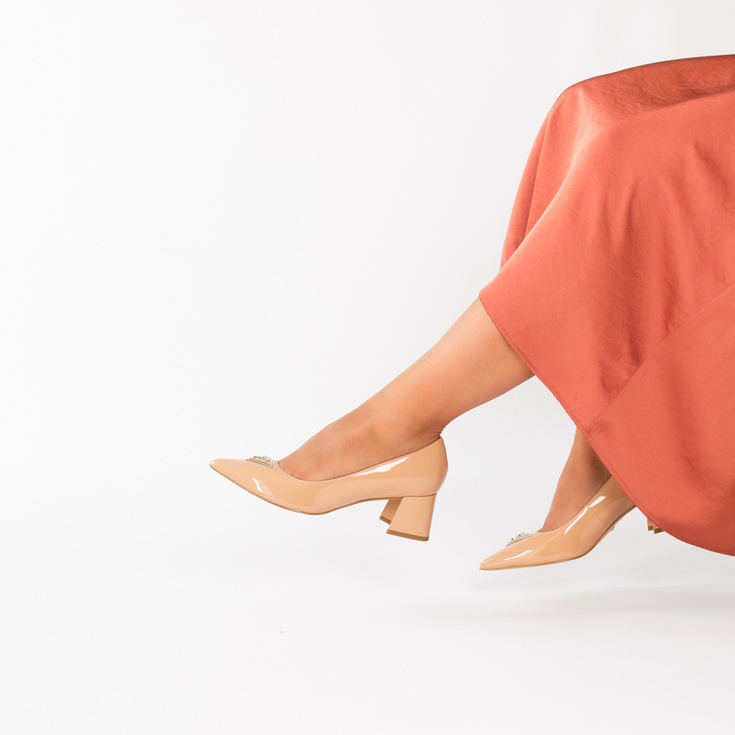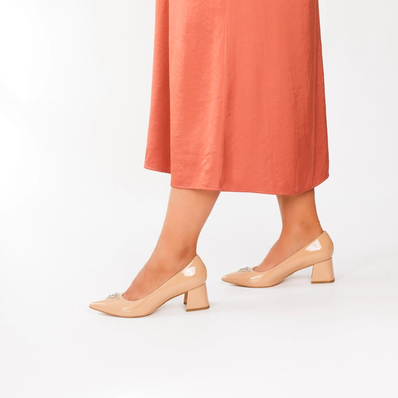 Model oparty jest na smukłym, wysokim obcasie, który wysmukla sylwetkę i nadaje jej lekkości. Szpiczasty nosek dodaje elegancji i nowoczesnego charakteru, a lakierowane wykończenie w odcieniu nude-beżowym tworzy efekt wydłużenia nóg. Dzięki neutralnej kolorystyce czółenka GUESS doskonale komponują się z garderobą w stylu business, wieczorowym, jak i minimalistycznym casualem.