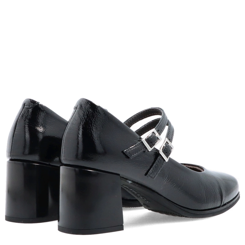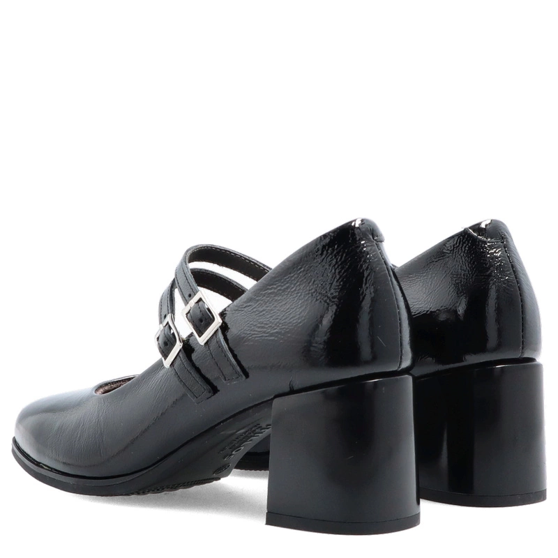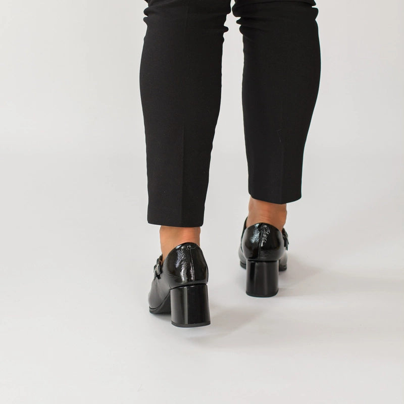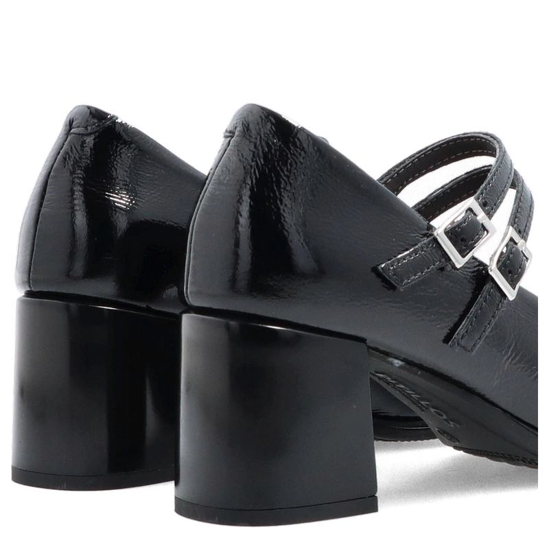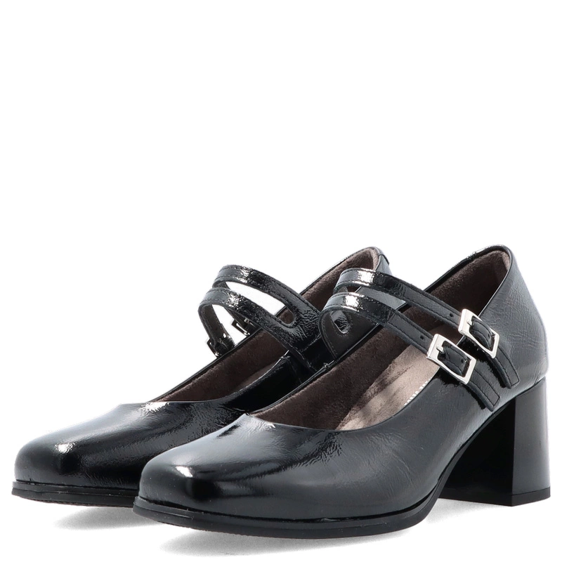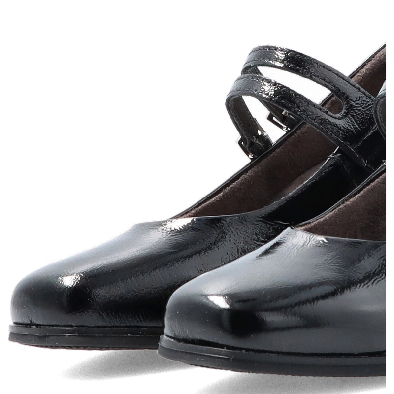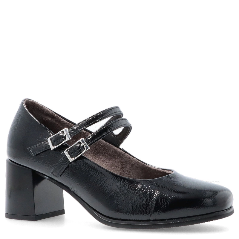 Czarne czółenka PITILLOS 10831 to połączenie elegancji i subtelnego stylu retro. Wykonane z wysokiej jakości skóry naturalnej lakierowanej, zachwycają delikatnym połyskiem i perfekcyjnym wykończeniem. Charakterystyczne dwa cienkie paseczki z klamerkami nie tylko pięknie zdobią, ale także stabilizują stopę, zapewniając pewny krok. Stabilny, szeroki obcas gwarantuje wygodę nawet podczas całodziennego noszenia.