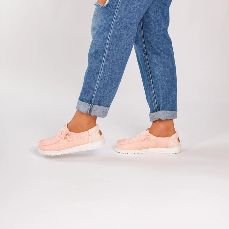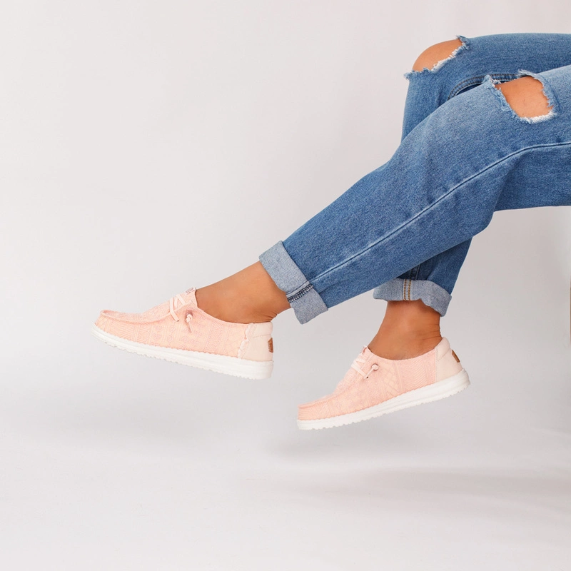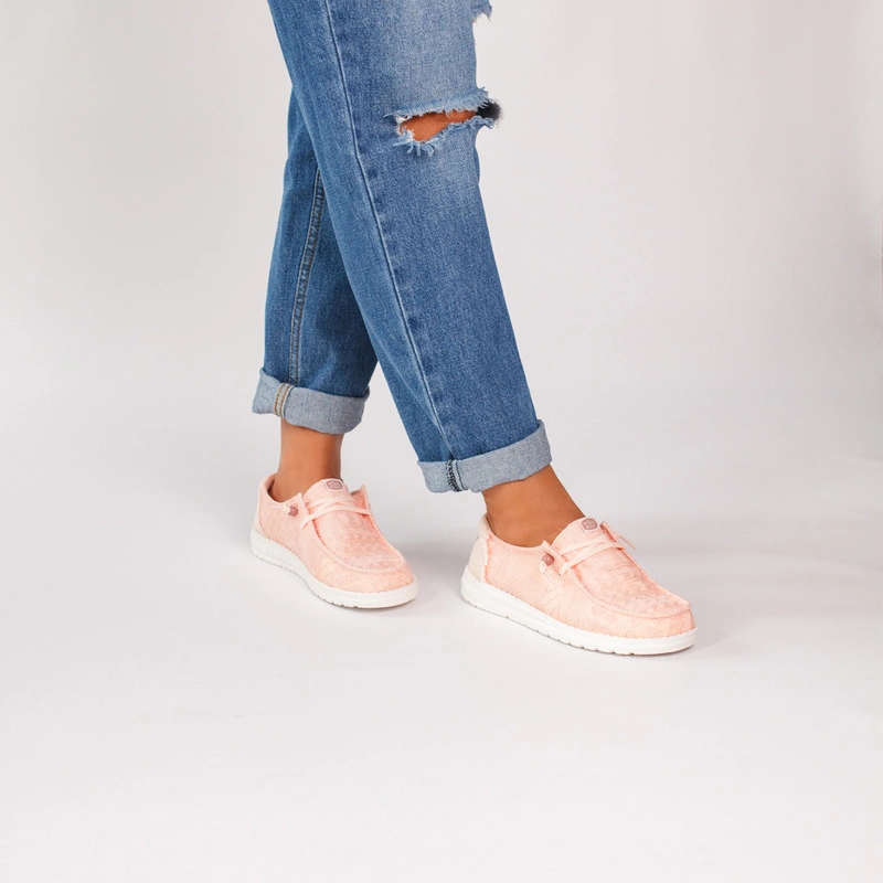 Hey Dude Wendy Crochet Lace w odcieniu różowym to niezwykle lekkie, wygodne półbuty dla kobiet, które cenią sobie styl z nutą romantyzmu i codzienny komfort. Cholewka z ażurowym wykończeniem przypominającym koronkę przyciąga wzrok i dodaje subtelności każdej stylizacji – idealna na wiosnę i lato.