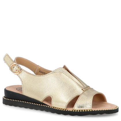 Filippo DS4470/25 to eleganckie sandały damskie wykonane z naturalnej skóry w efektownym, złotym kolorze. Ich subtelny połysk dodaje stylizacjom wyjątkowego charakteru, a lekka konstrukcja i wygodna podeszwa sprawiają, że są doskonałym wyborem na co dzień i specjalne okazje w cieplejsze dni.