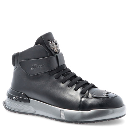Męskie sneakersy JOHN DOUBARE wykonane zostały z naturalnej skóry licowej, która jest trwała i odznacza się eleganckim wyglądem. Czarna kolorystyka nadaje uniwersalnego charakteru. Wysokie sneakersy posiadają wkładkę ze skóry naturalnej, która zapewnia wysoki komfort użytkowania. Wkładka ze skóry naturalnej posiada właściwości antybakteryjne - zapobiega powstawaniu nieprzyjemnego zapachu i wpływa na zmniejszenie pocenia się stóp. Obuwie jest sznurowane, dzięki czemu dopasujesz obuwie do tęgości stopy. Dodatkowo posiada również suwak oraz regulację paskiem na rzep. Gumowa podeszwa posiada właściwości antypoślizgowe. Obuwie nie posiada ocieplenia.